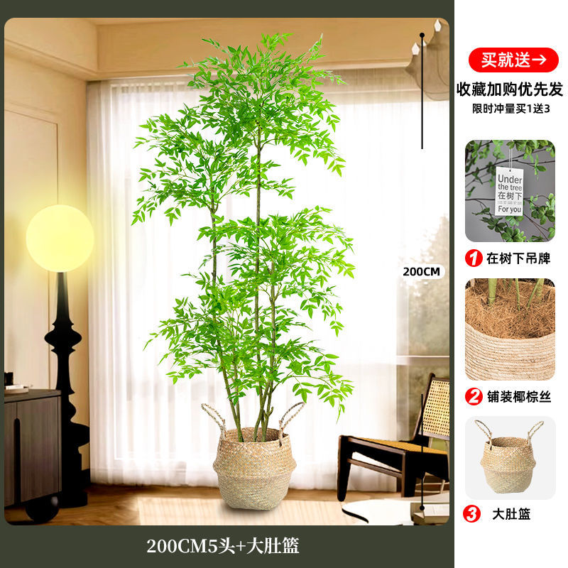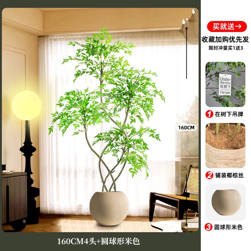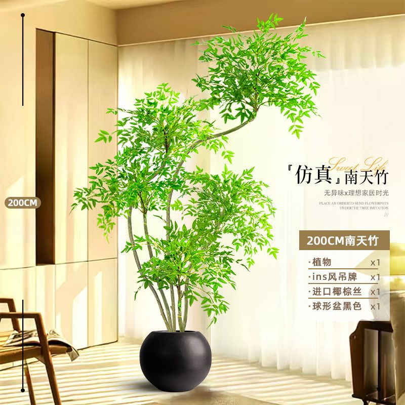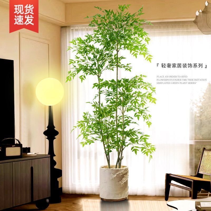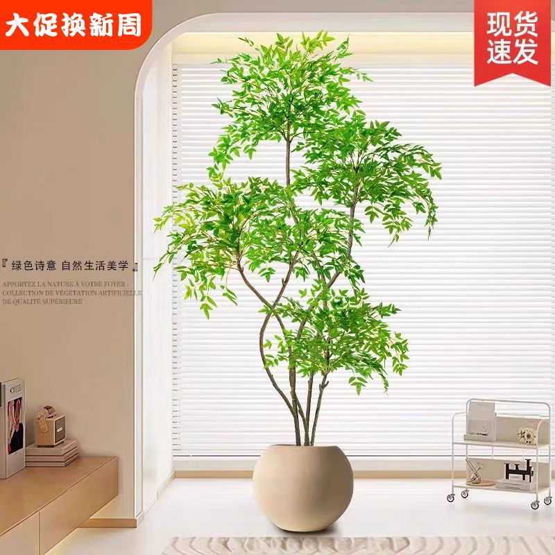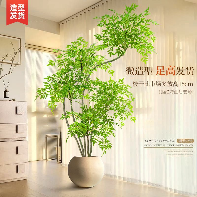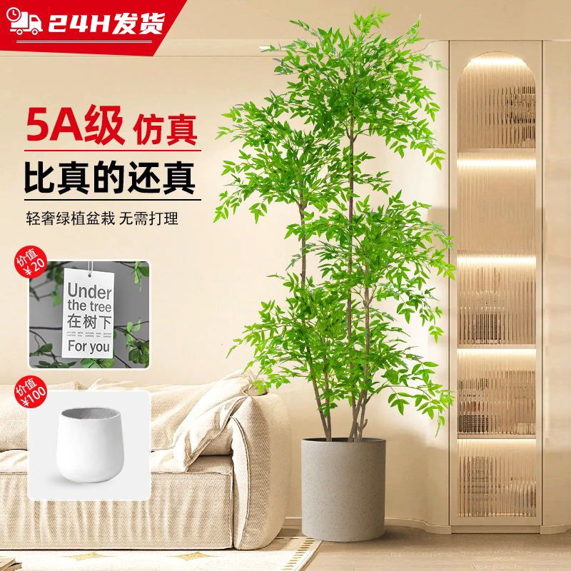 仿真南天竹仿真绿植高端轻奢室内大型落地盆栽客厅摆件仿生假花树