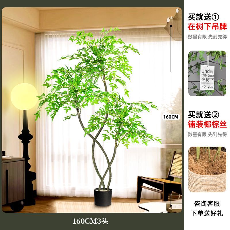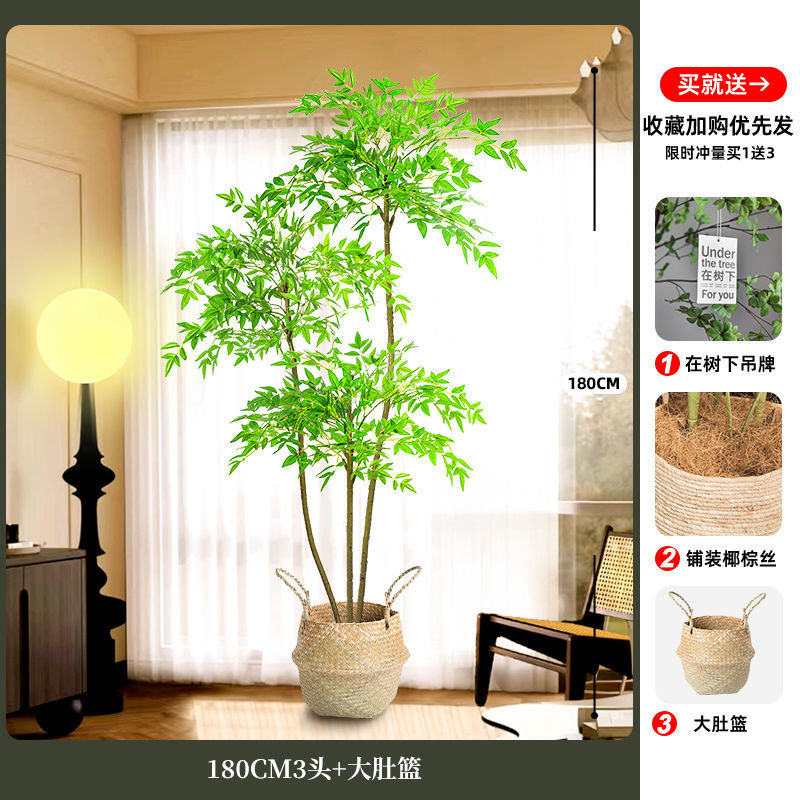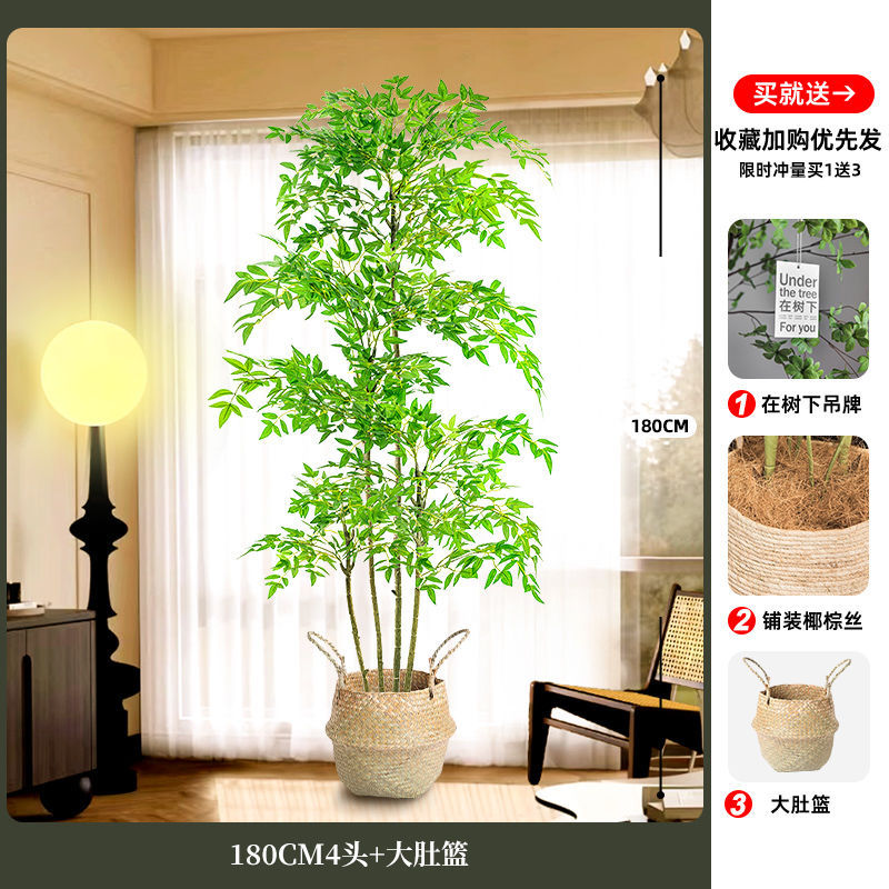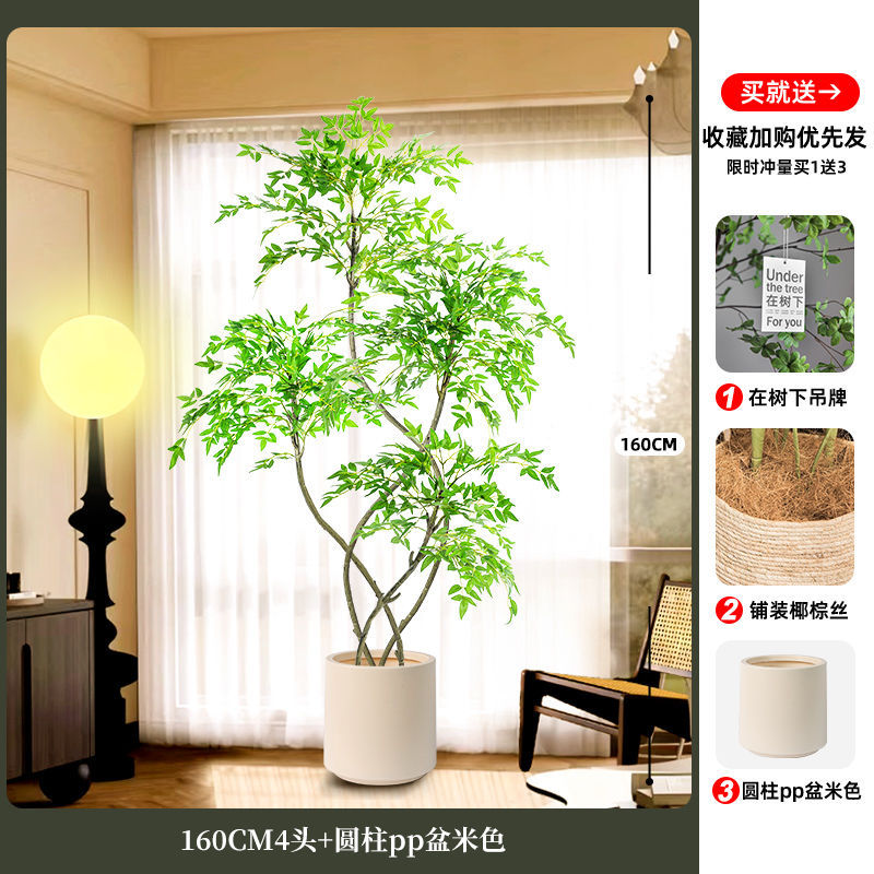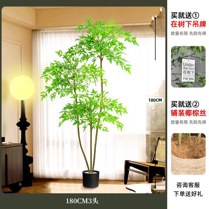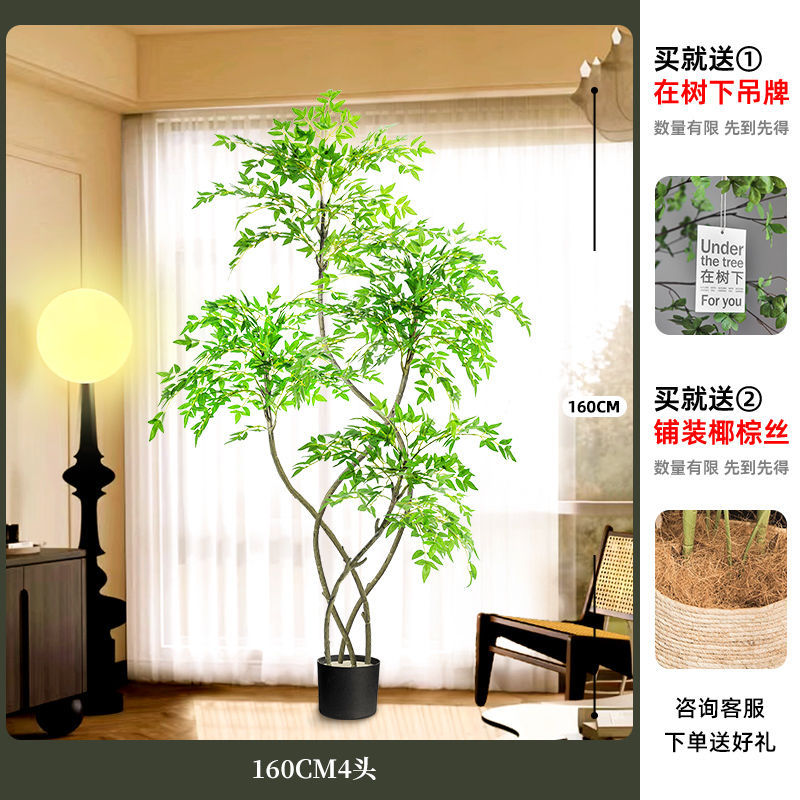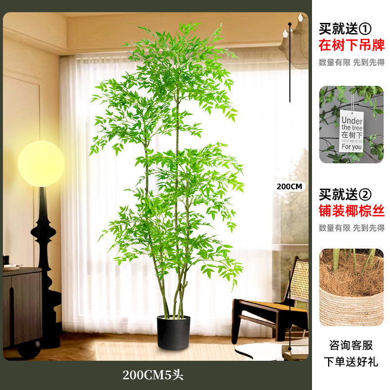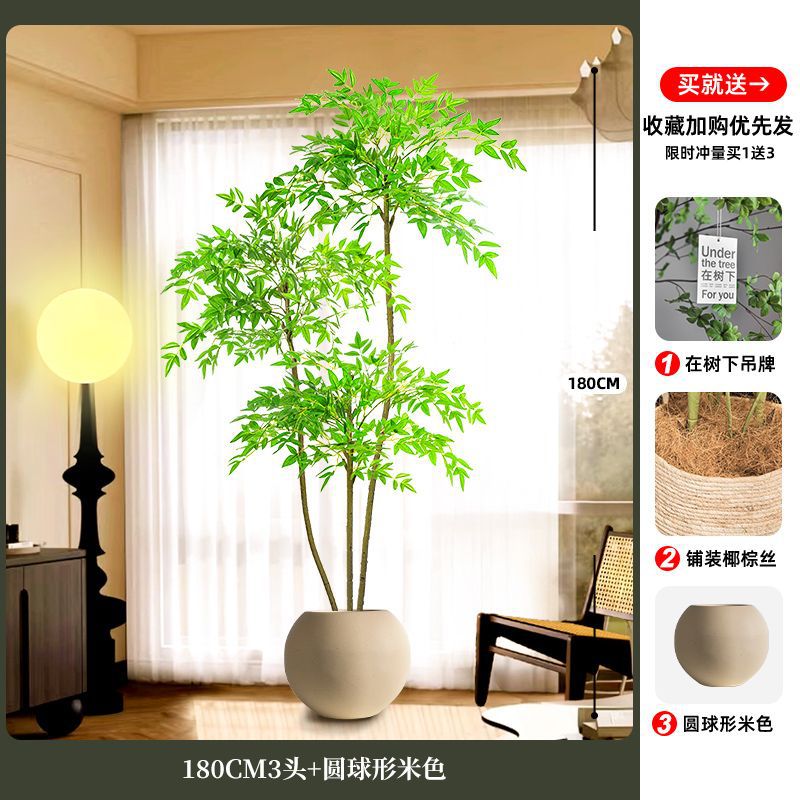 仿真南天竹仿真绿植高端轻奢室内大型落地盆栽客厅摆件仿生假花树