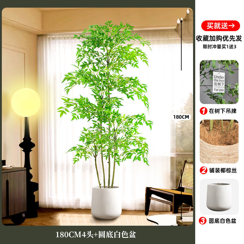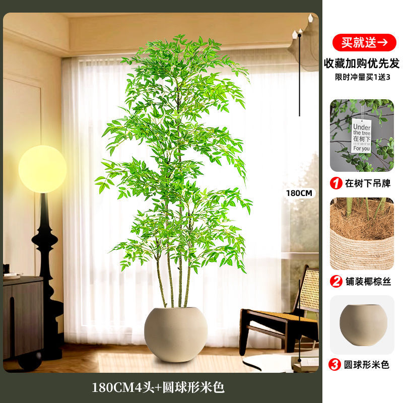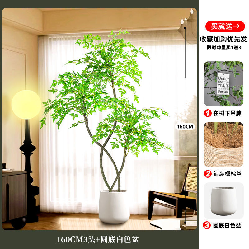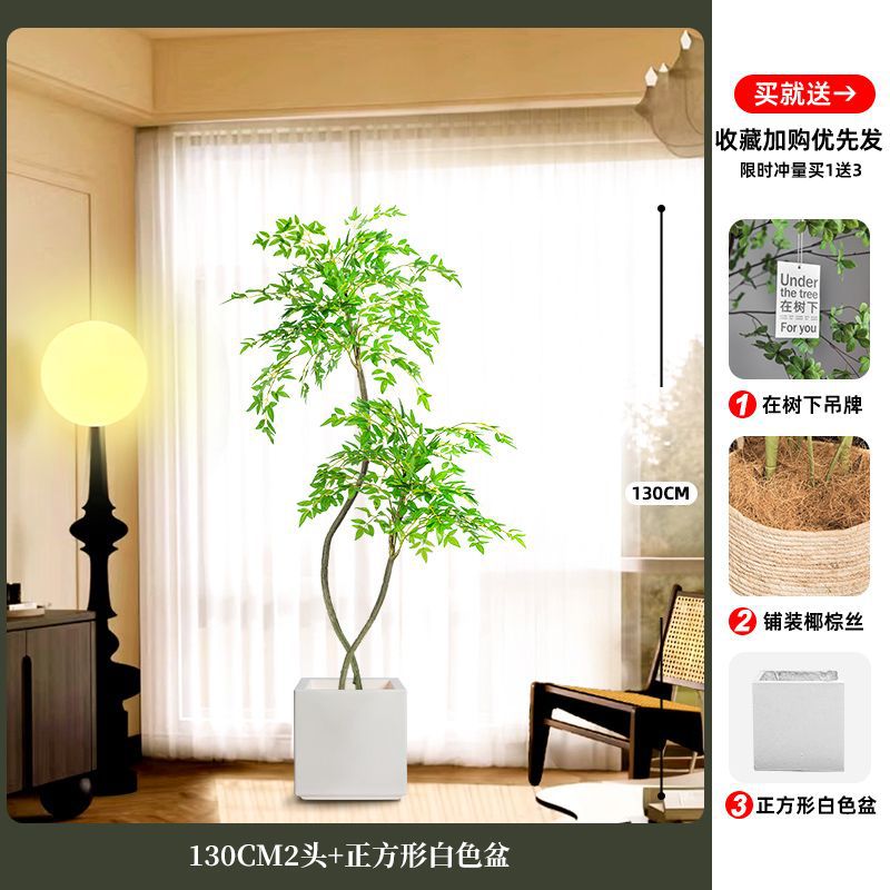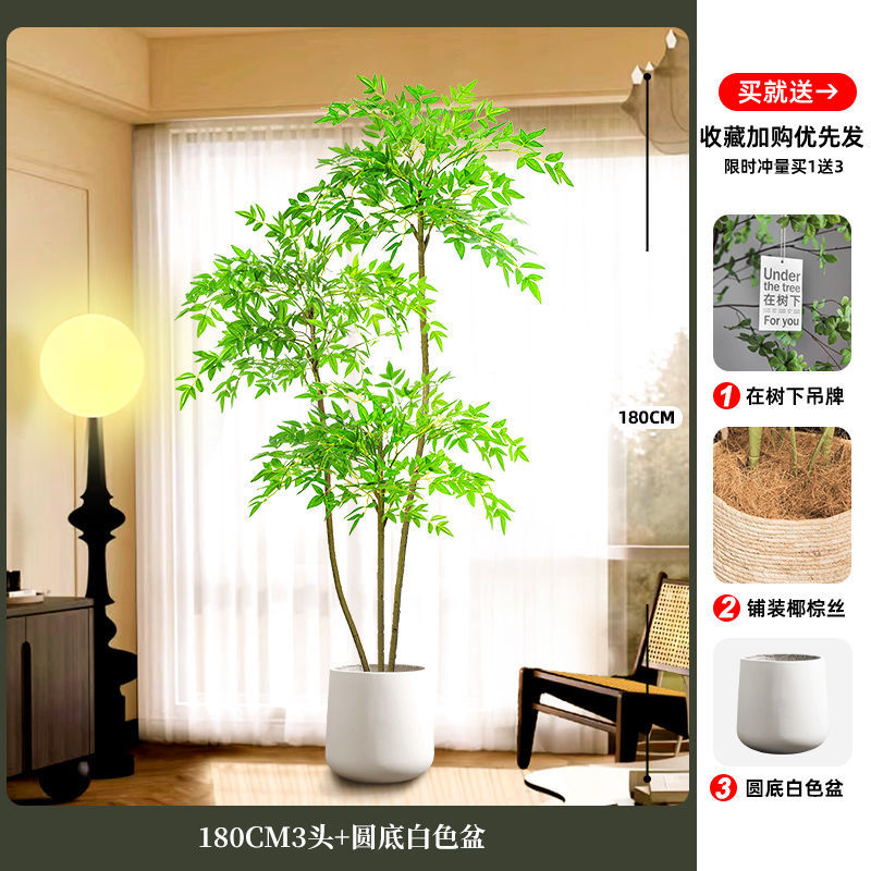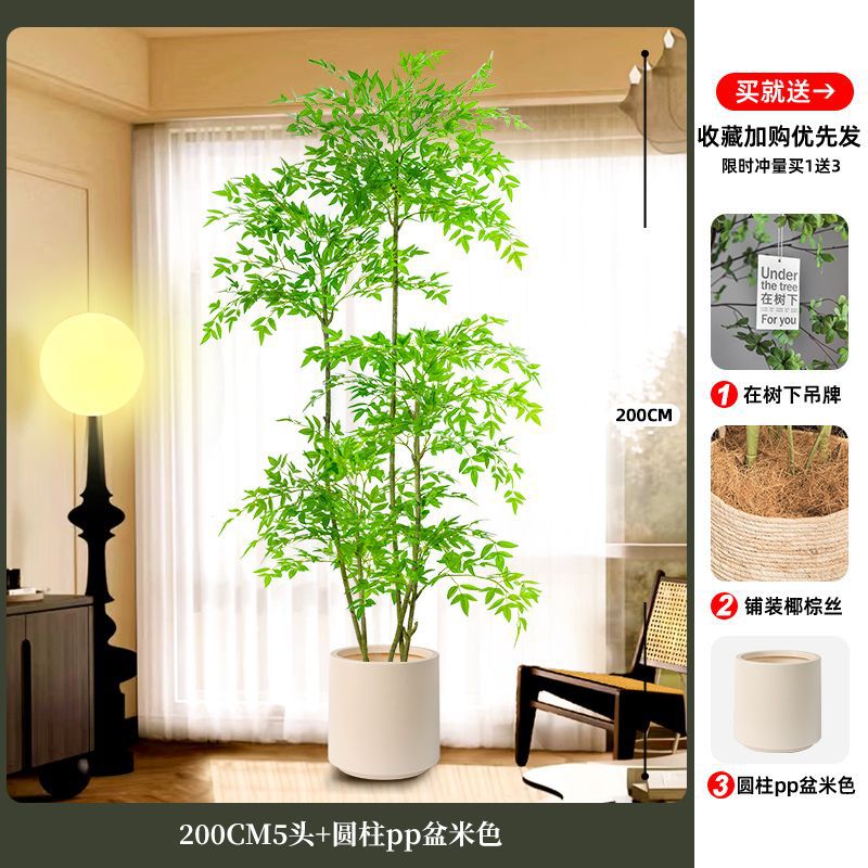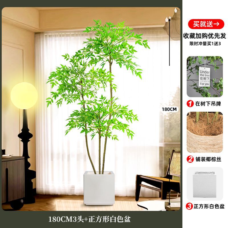 仿真南天竹仿真绿植高端轻奢室内大型落地盆栽客厅摆件仿生假花树
