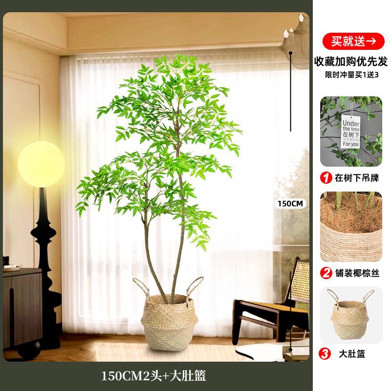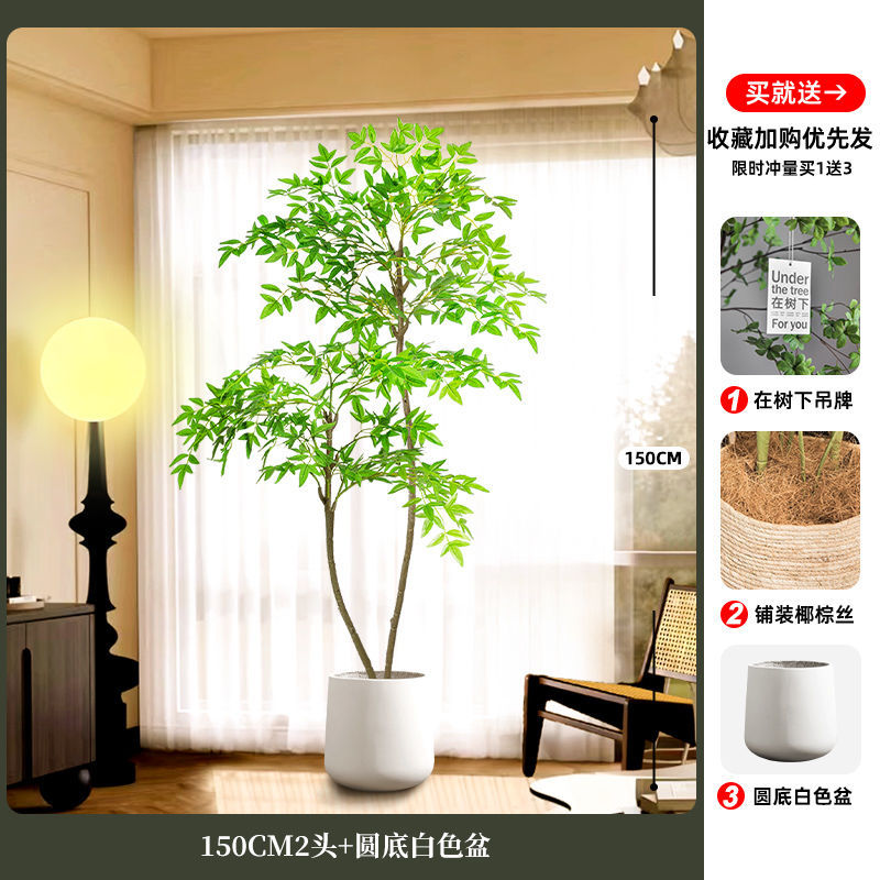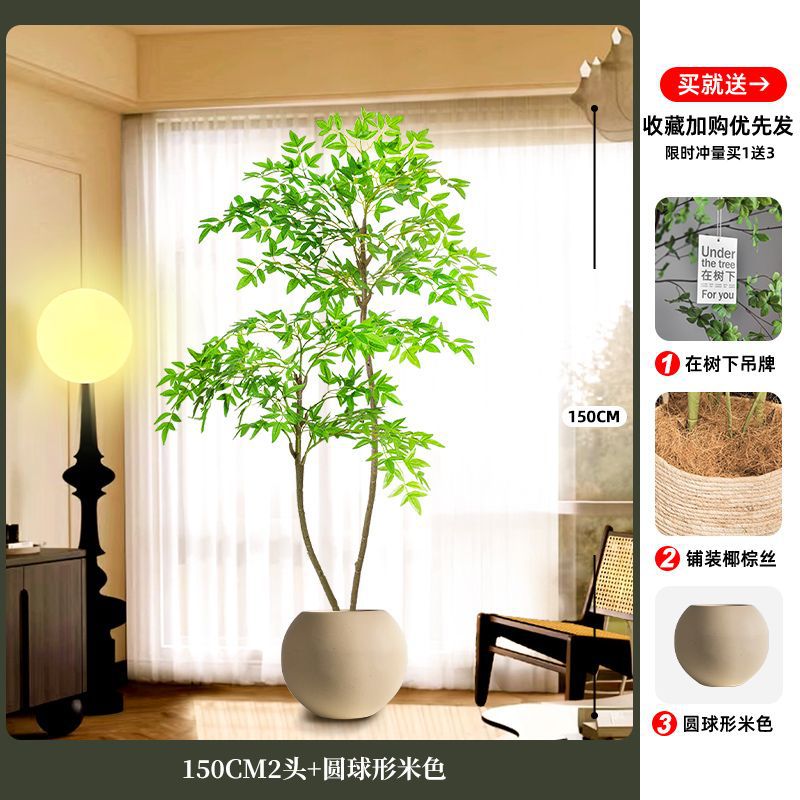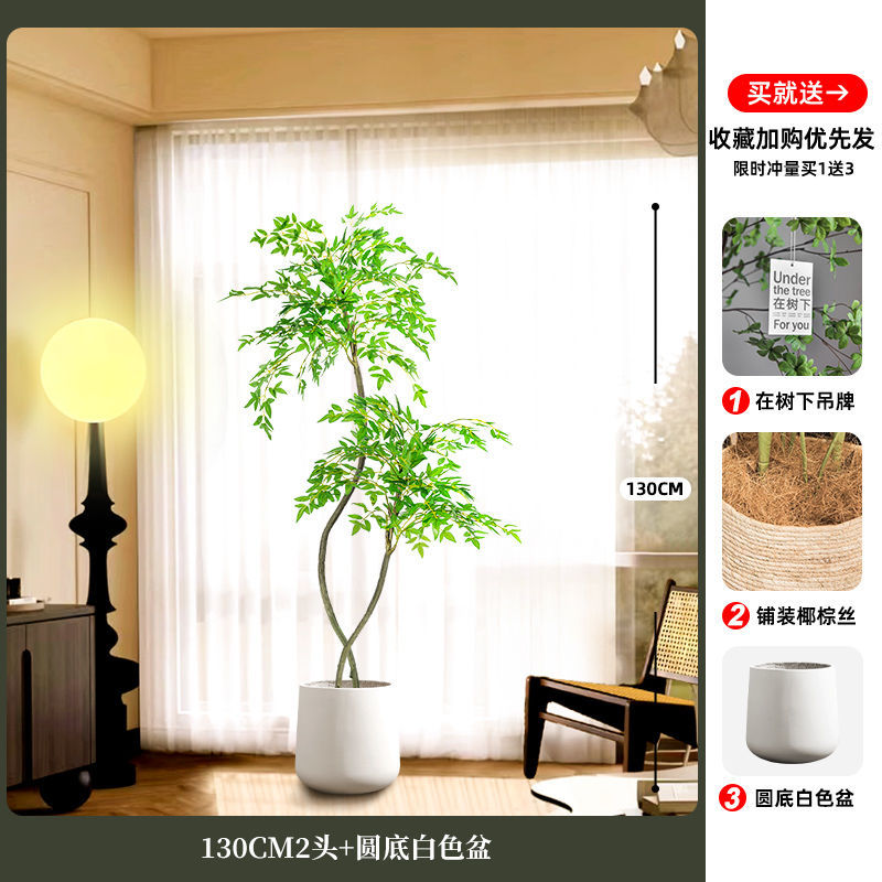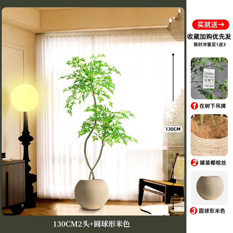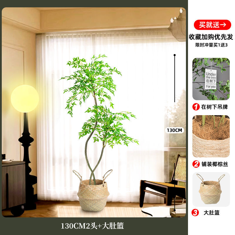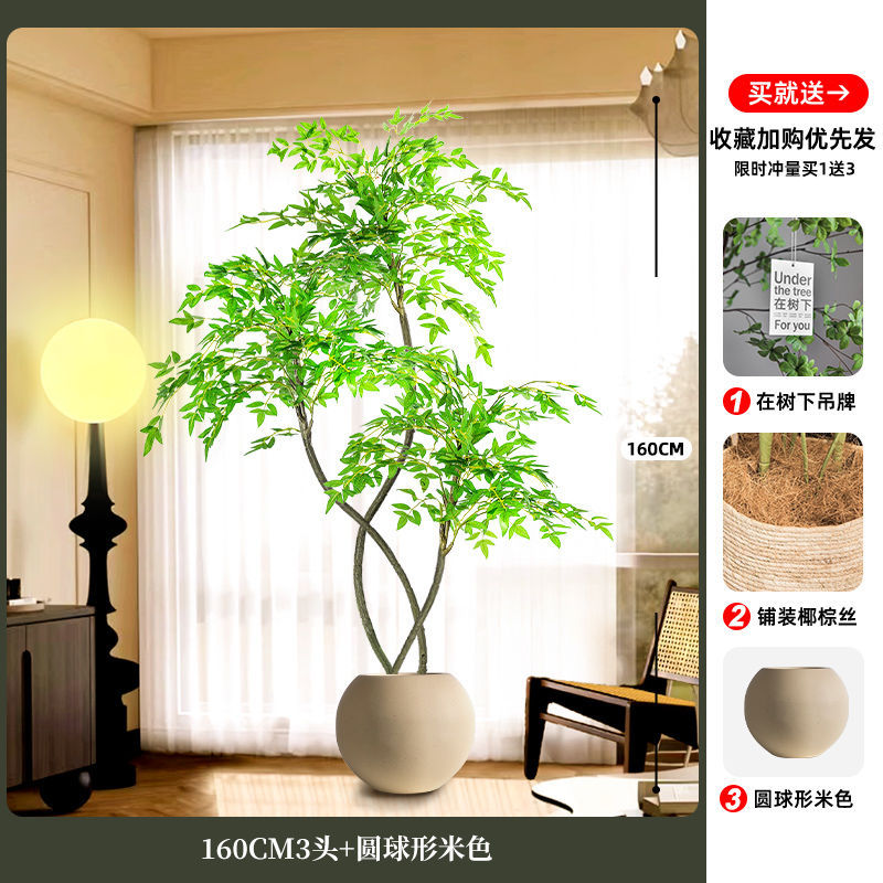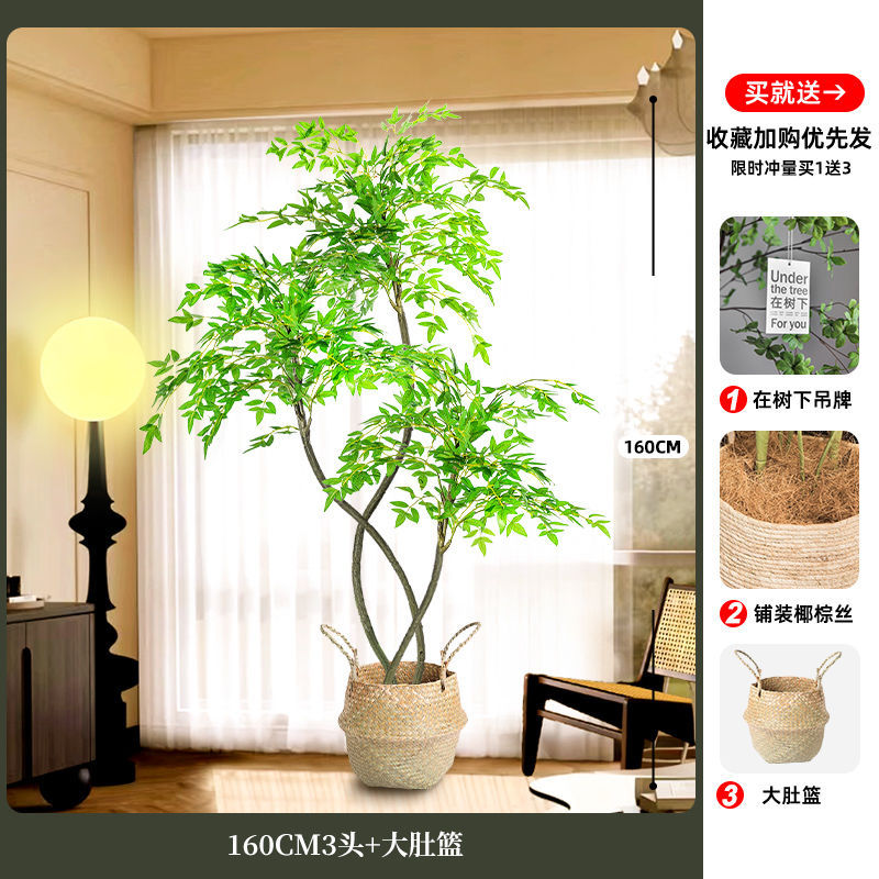 仿真南天竹仿真绿植高端轻奢室内大型落地盆栽客厅摆件仿生假花树