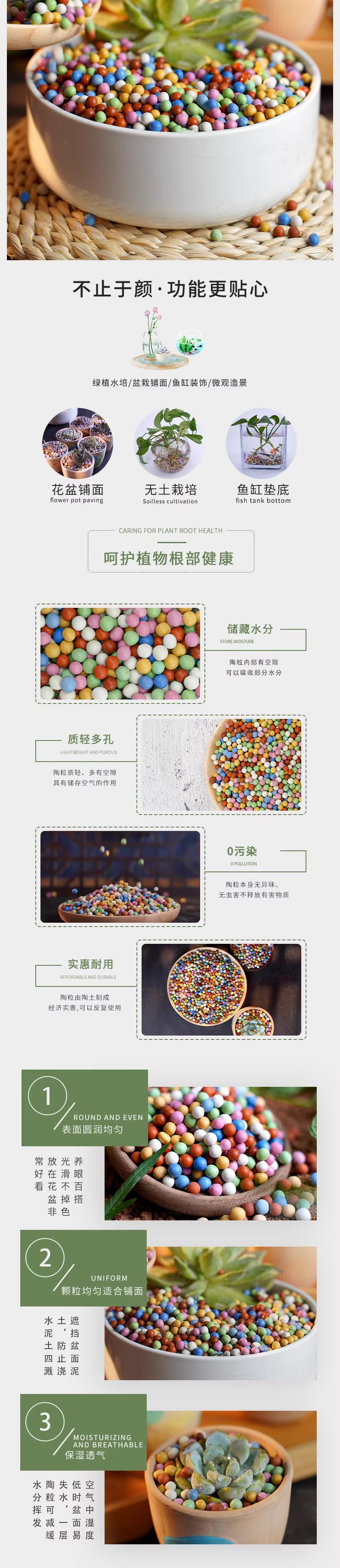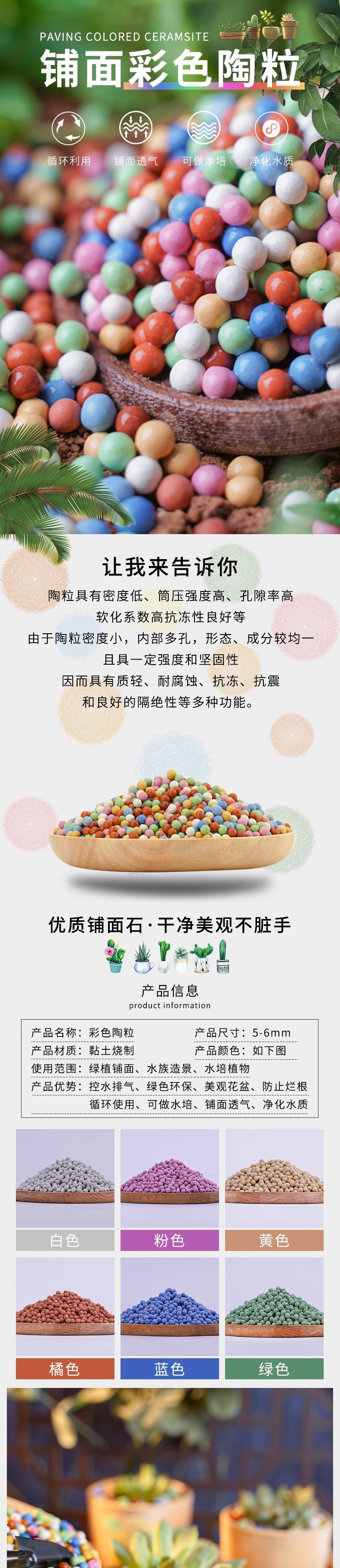 彩色陶粒颗粒花用垫底铺面石养花水培盆栽鱼缸多肉营养土专用石子