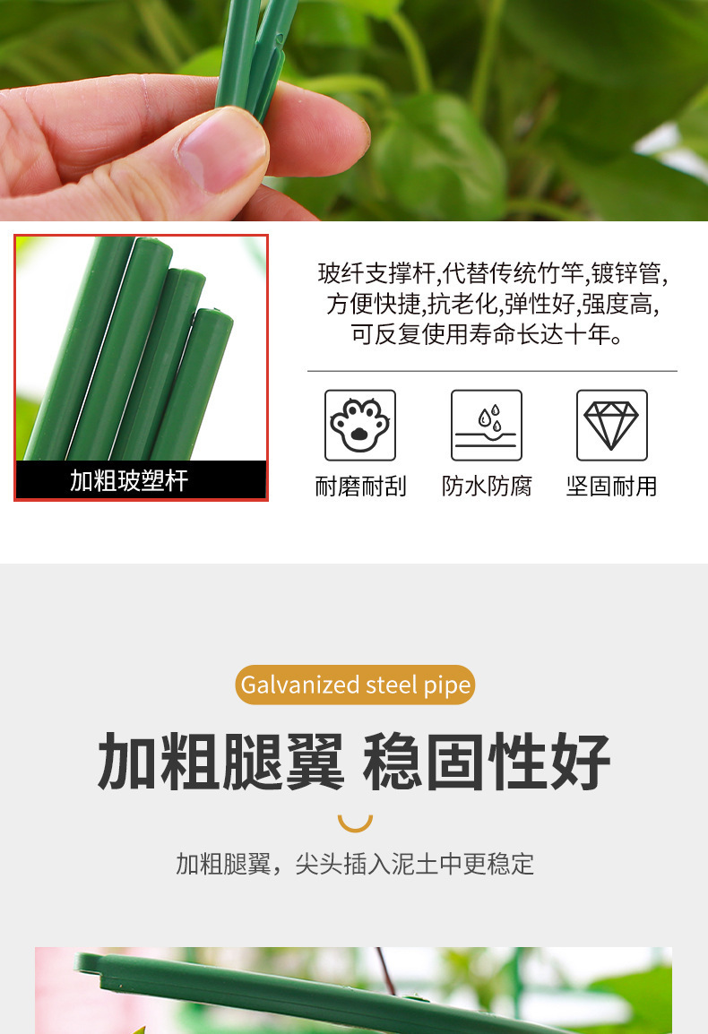 花支柱爬藤架铁艺花支架植物绿萝固定攀爬架绿植爬藤支架园艺用品