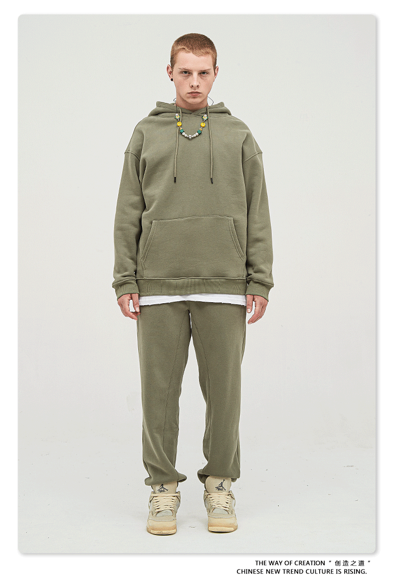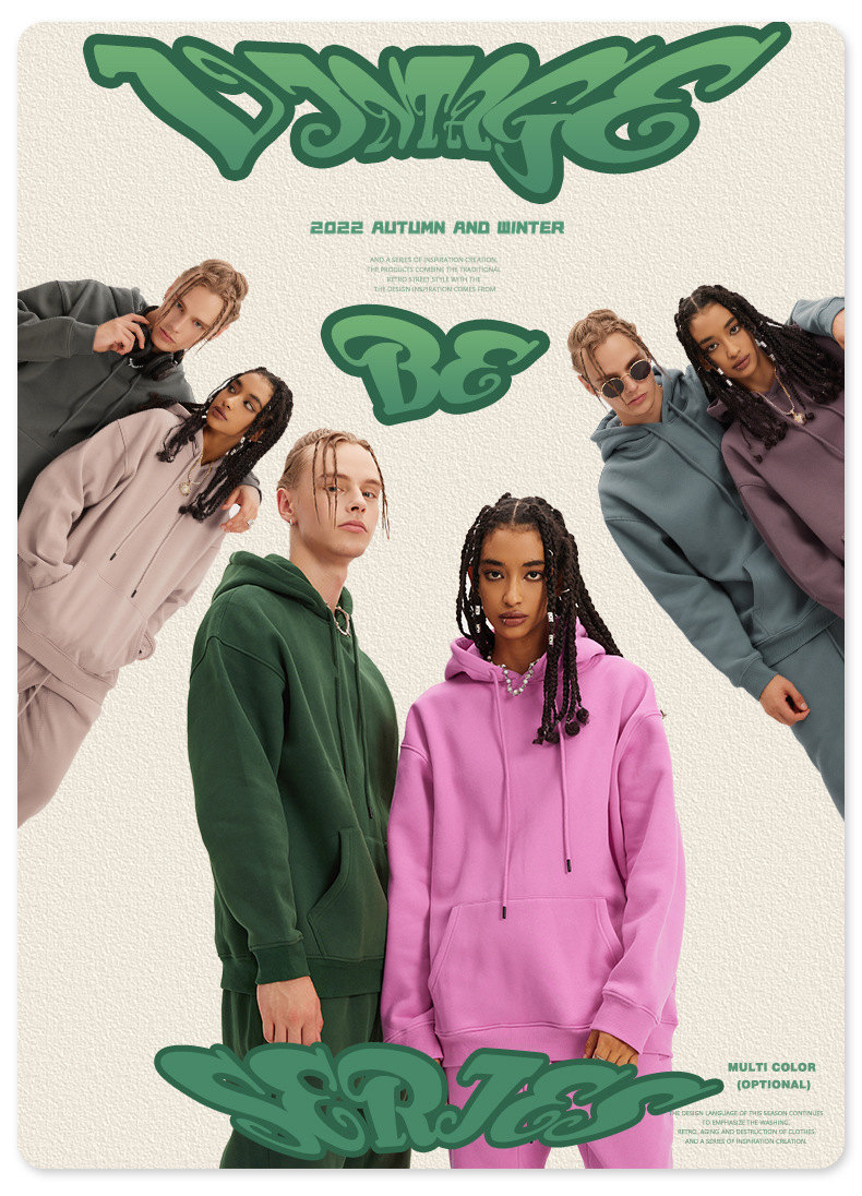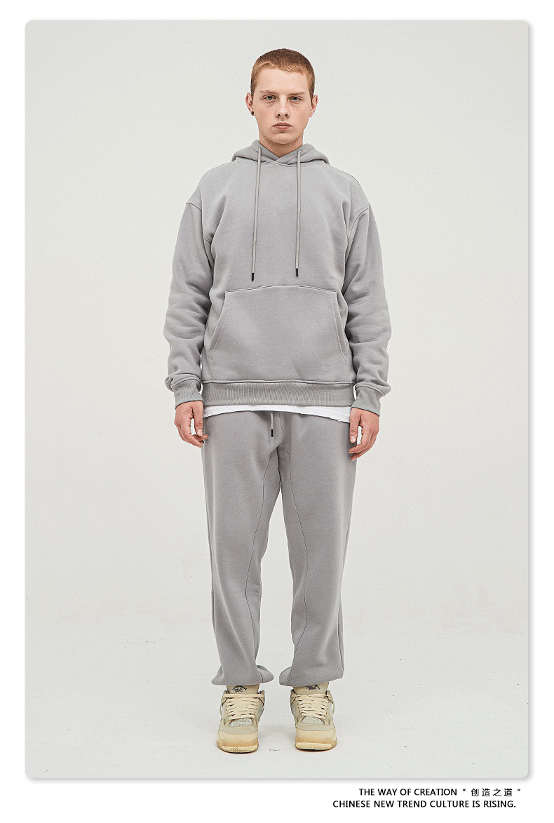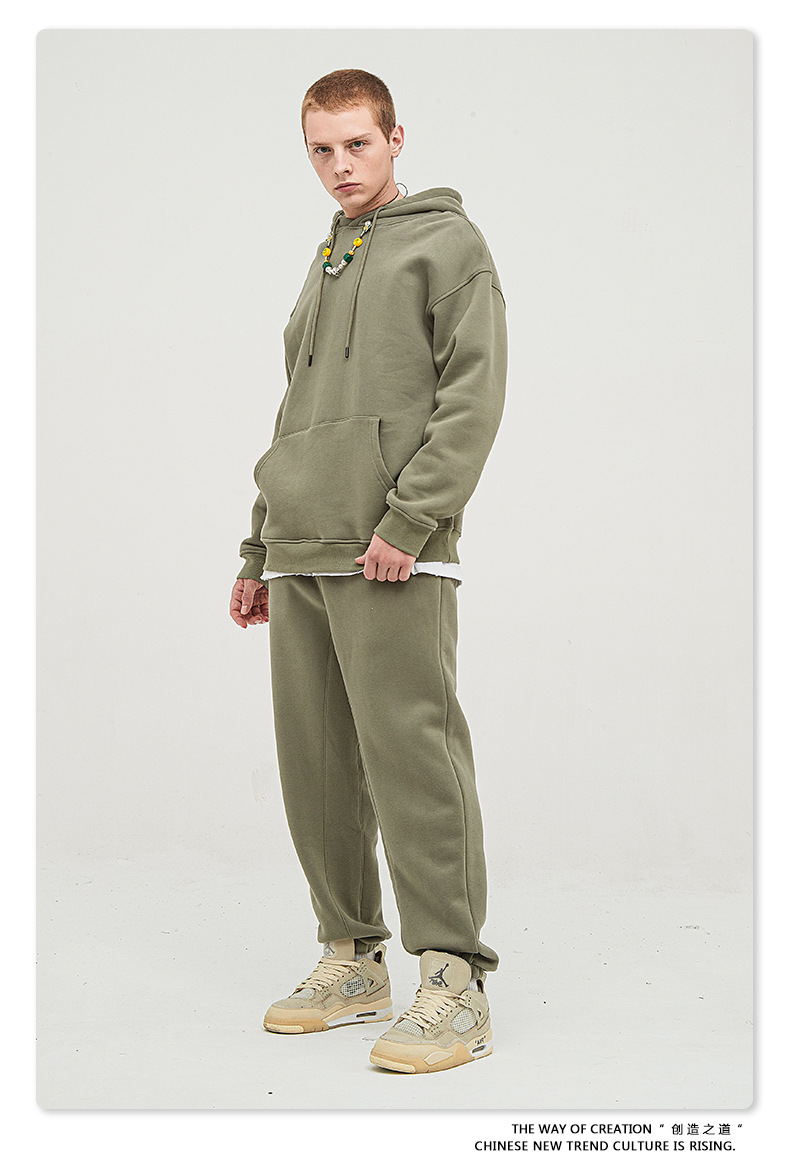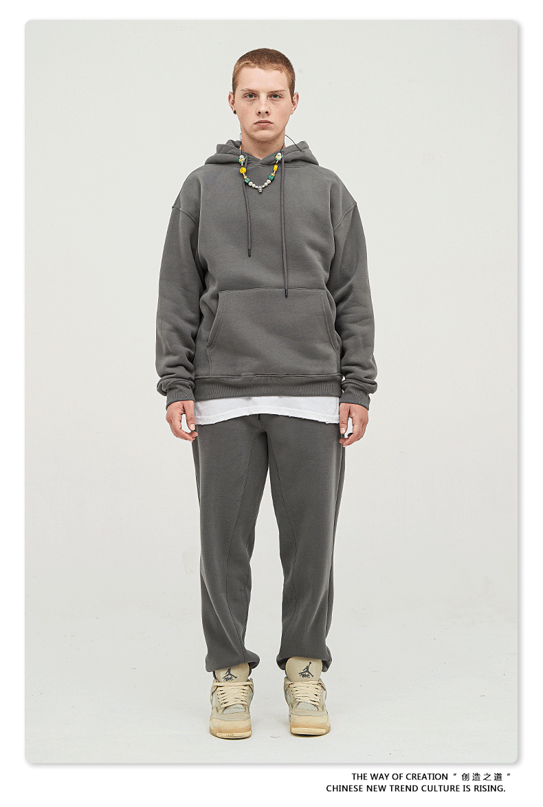 BE男装秋冬2025美式潮牌宽松连帽卫衣男外贸加绒加厚套装男款卫衣