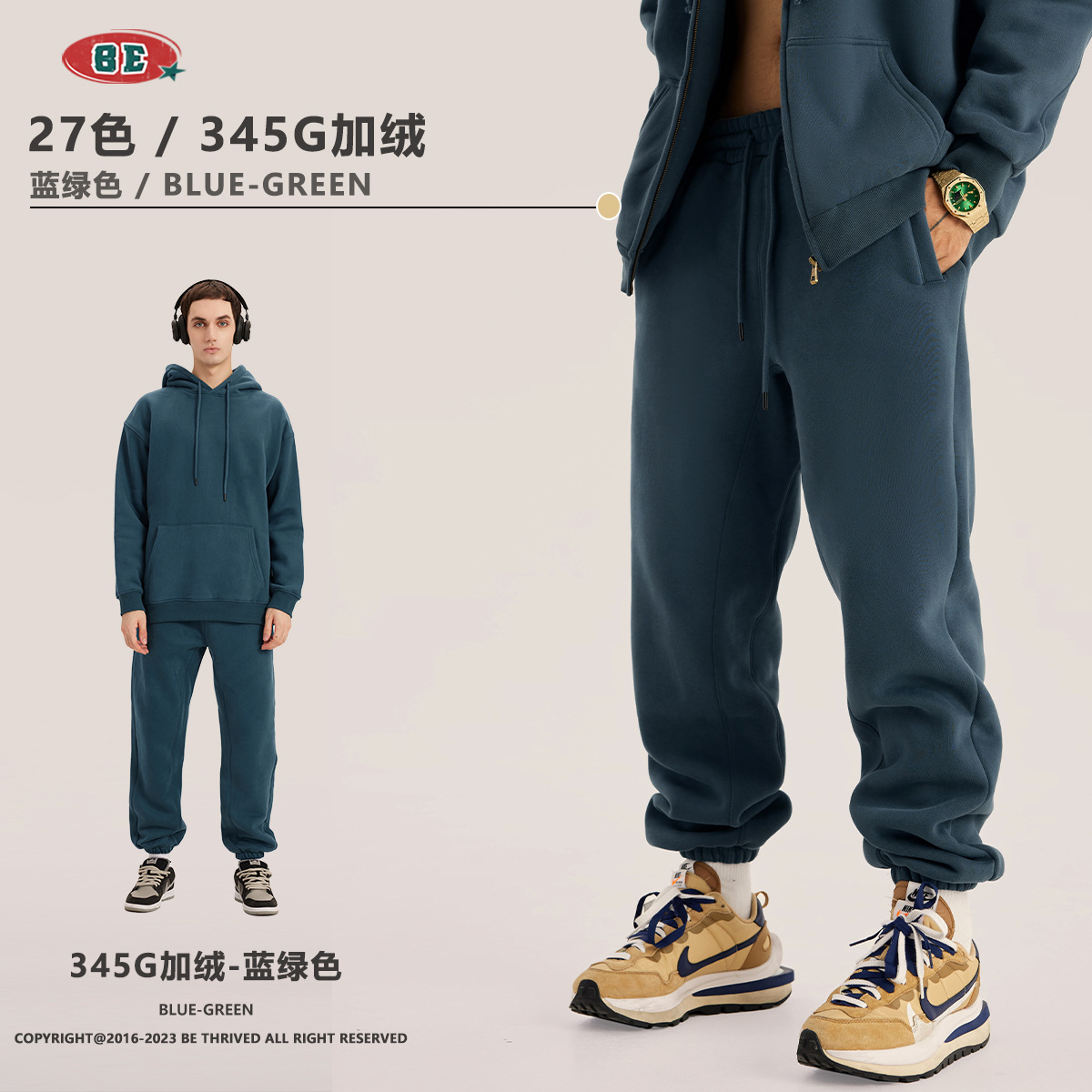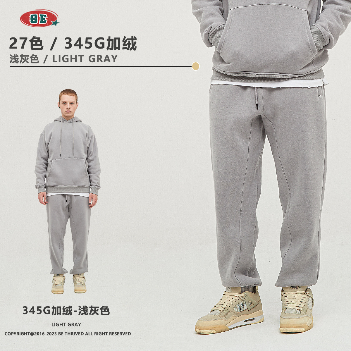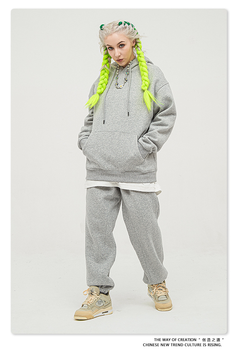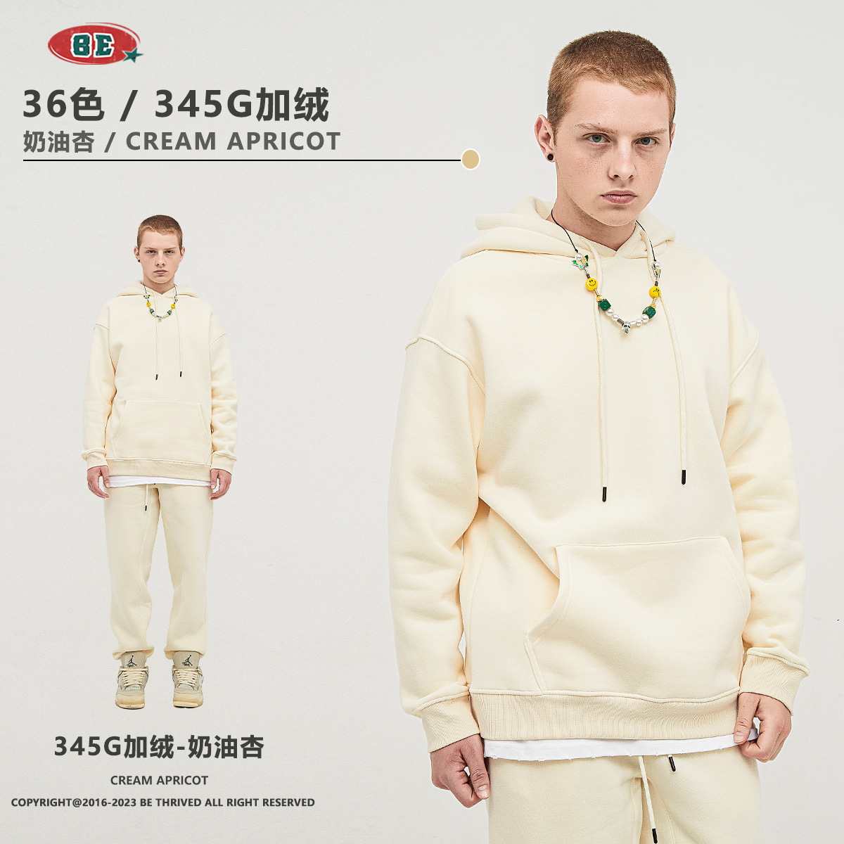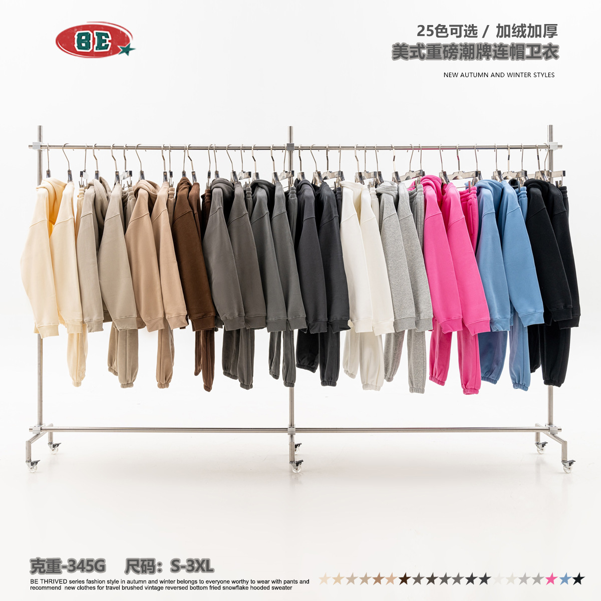 BE男装秋冬2025美式潮牌宽松连帽卫衣男外贸加绒加厚套装男款卫衣