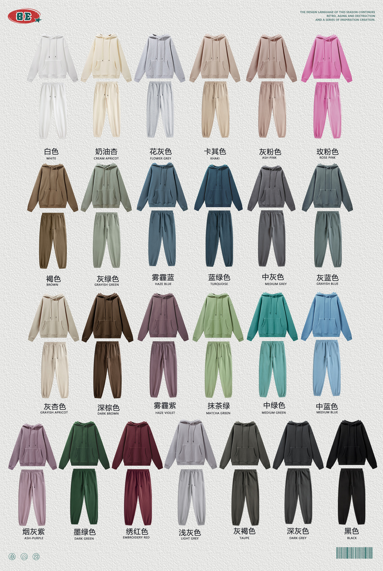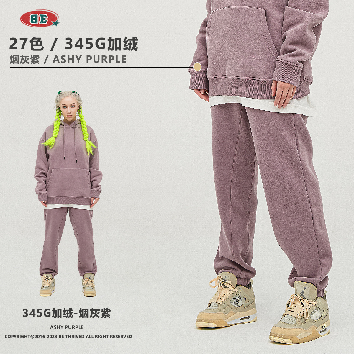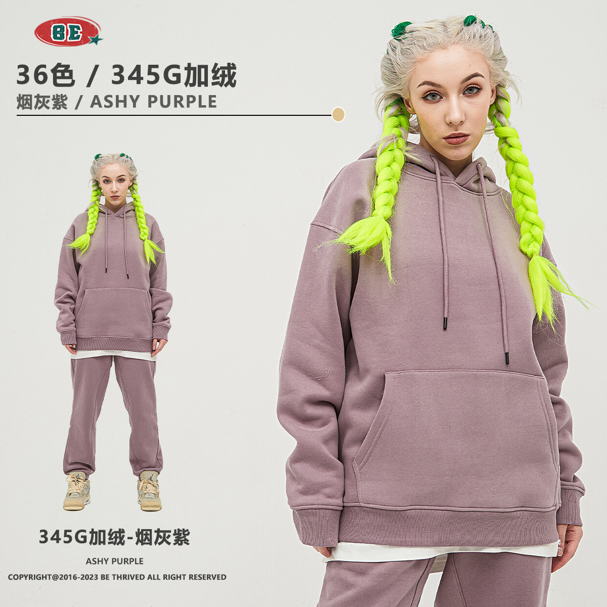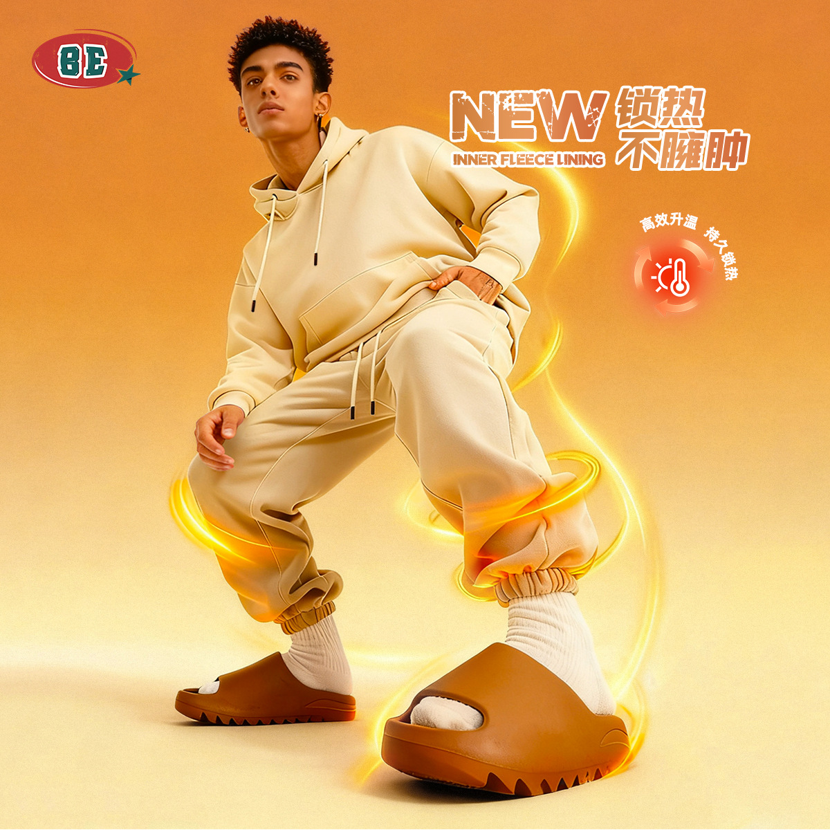 BE男装秋冬2025美式潮牌宽松连帽卫衣男外贸加绒加厚套装男款卫衣