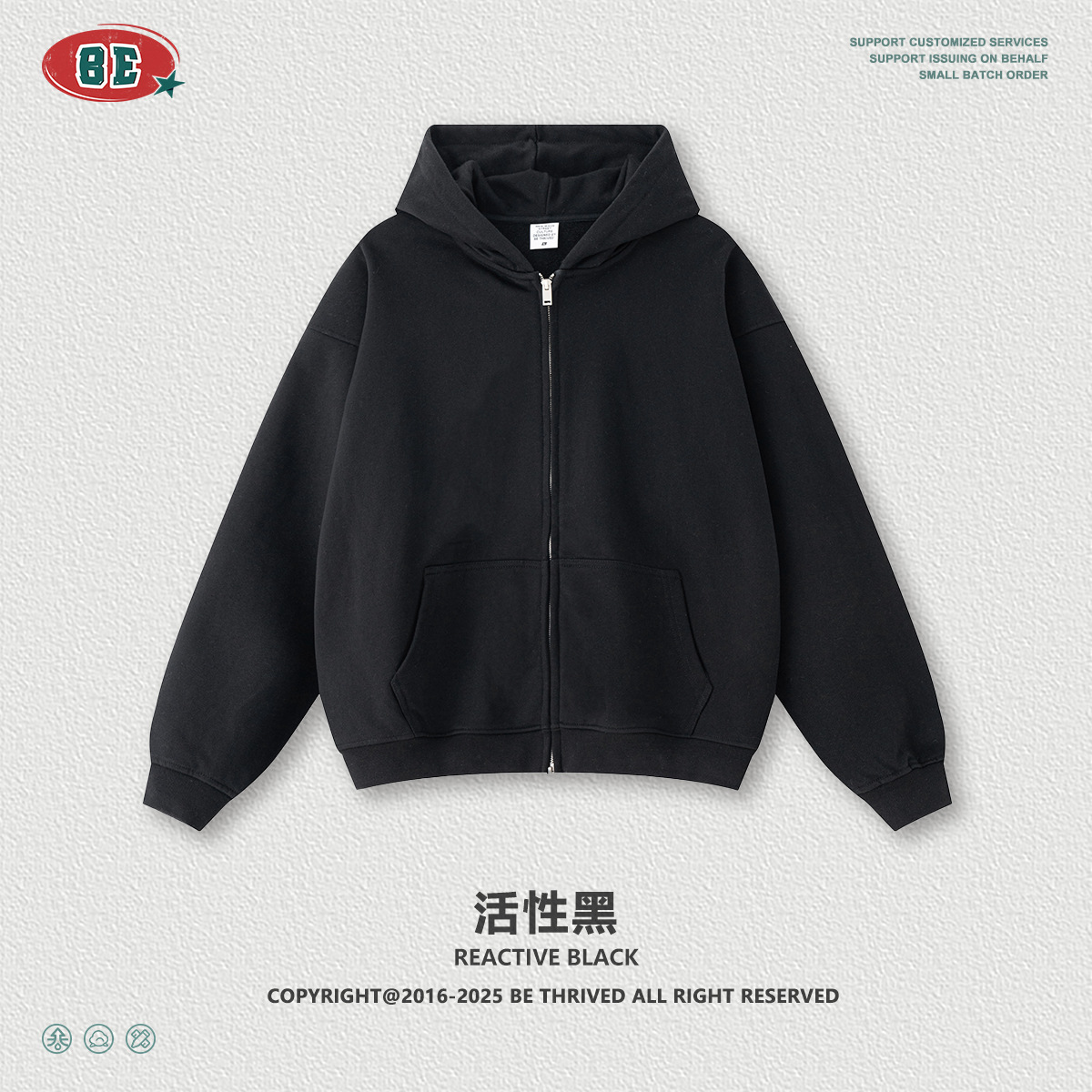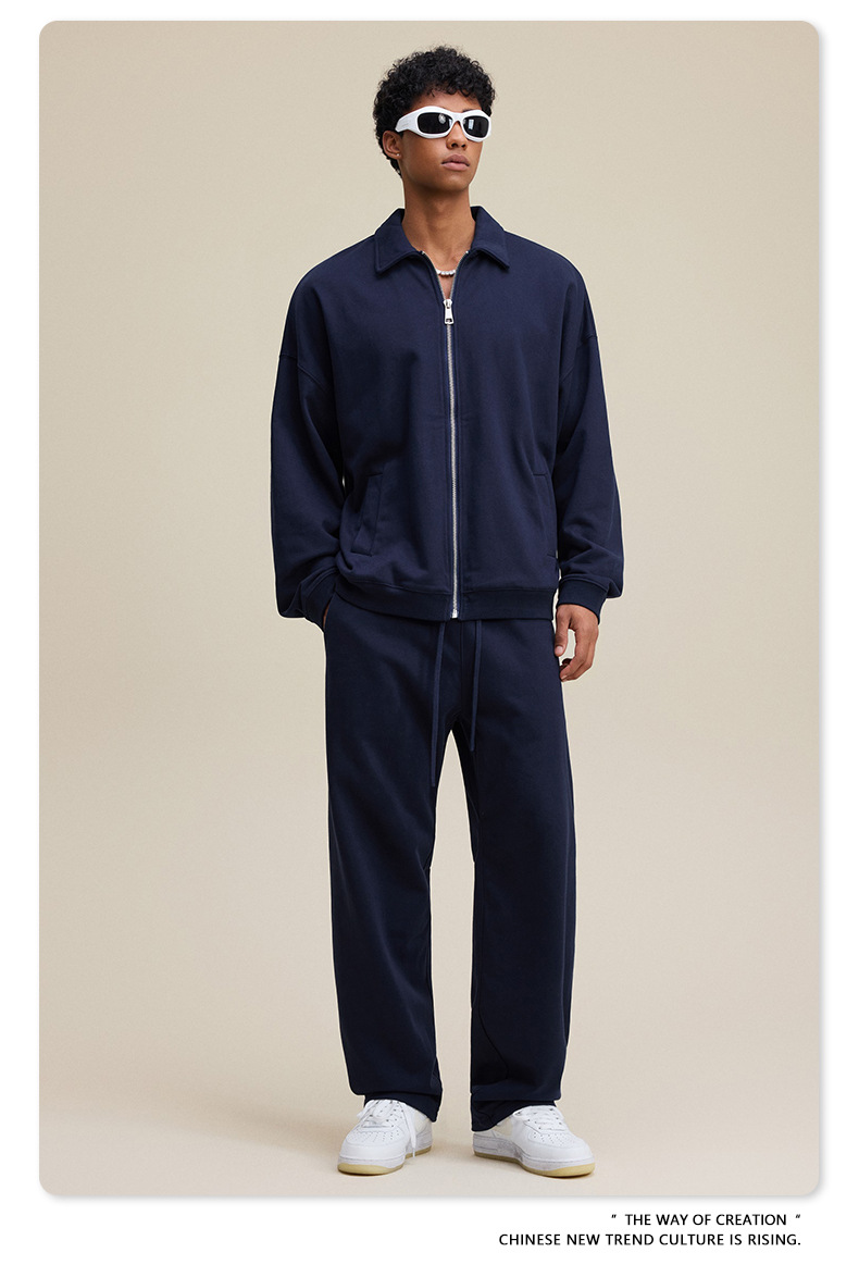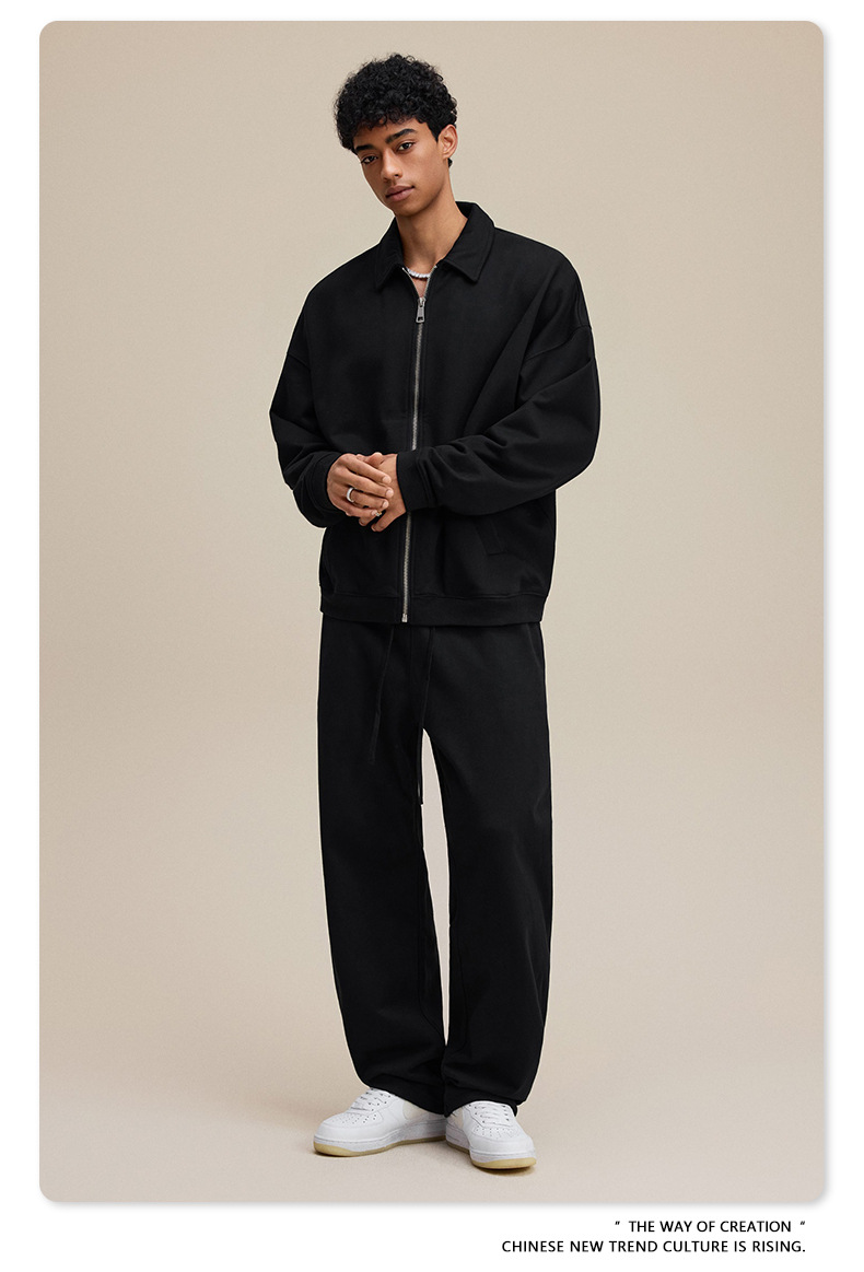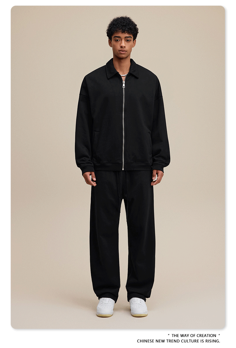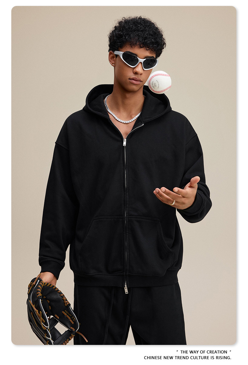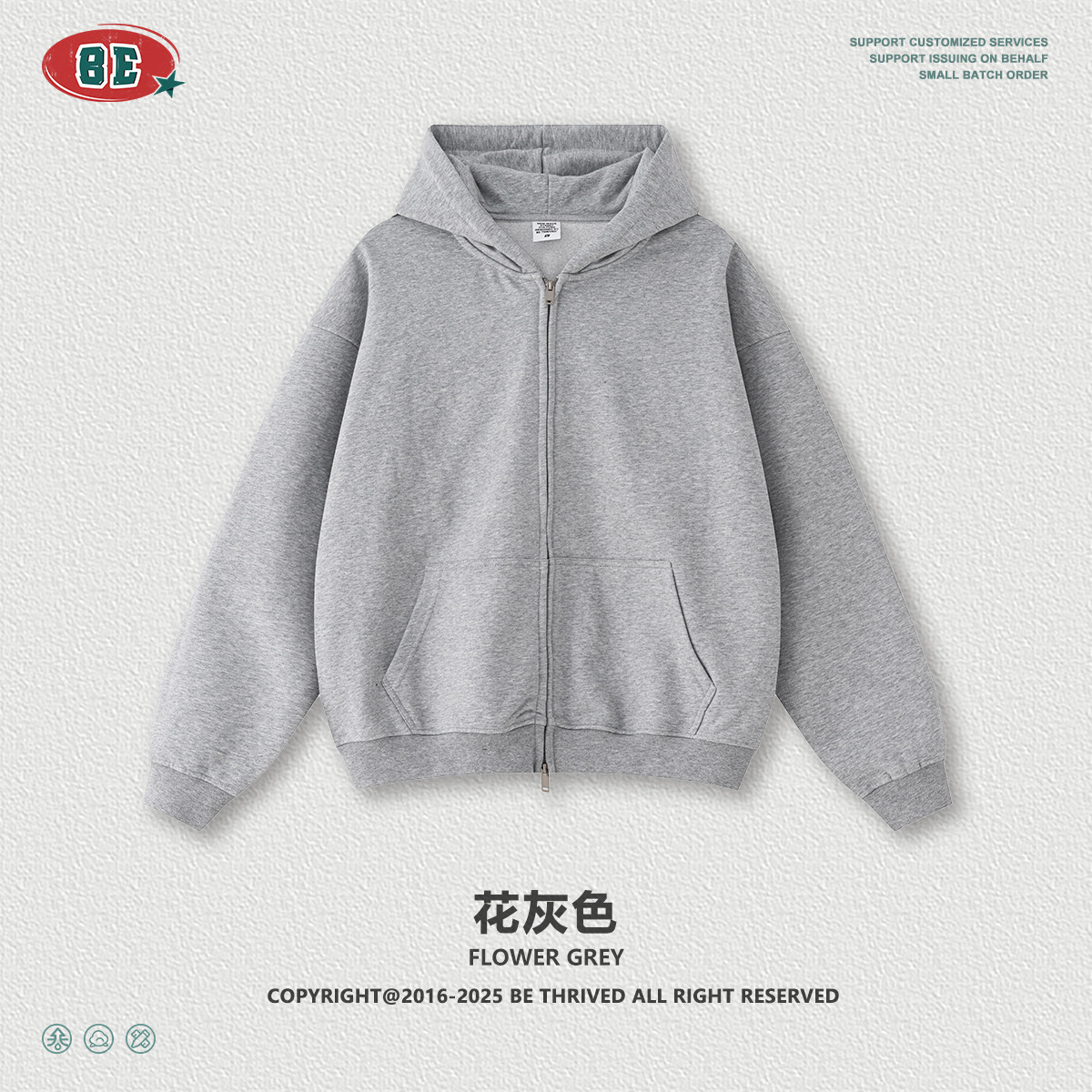 BE男装2025秋季美式宽松纯色加绒加厚拉链连帽卫衣休闲长裤套装男