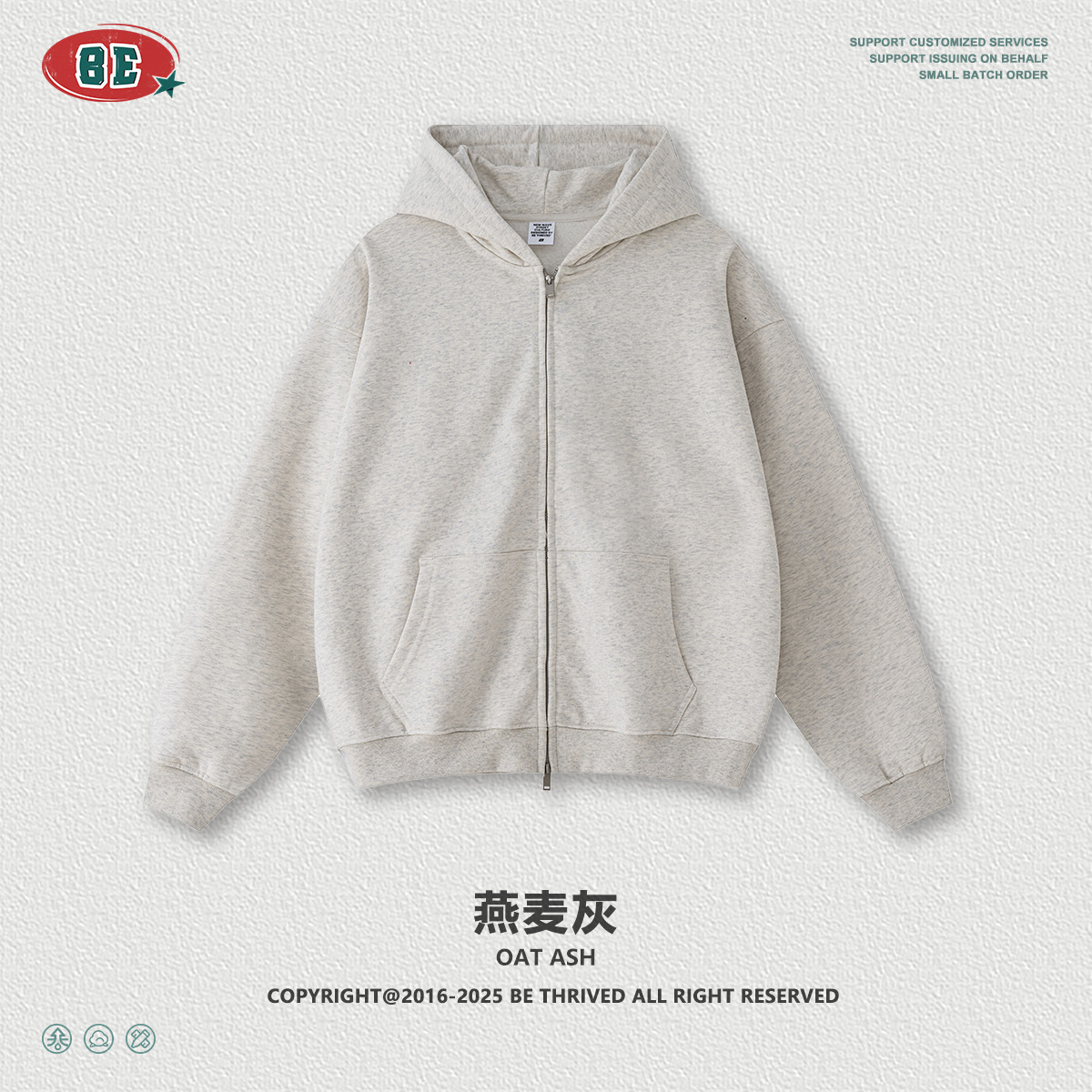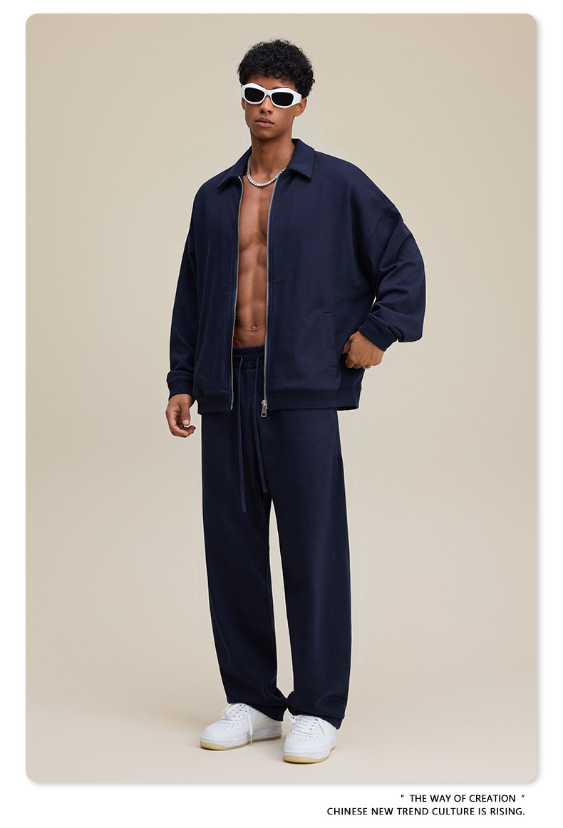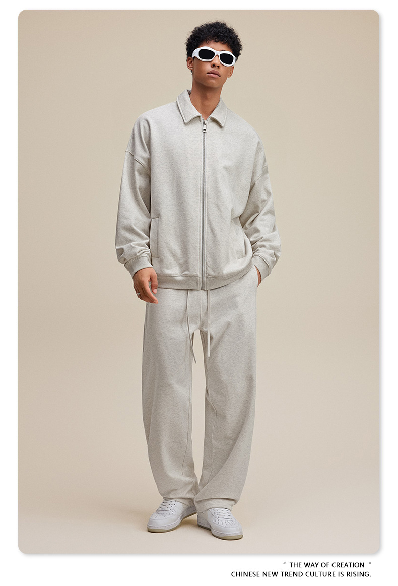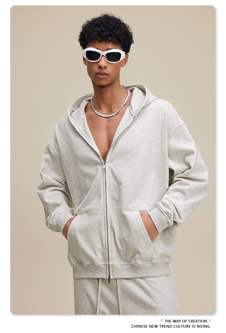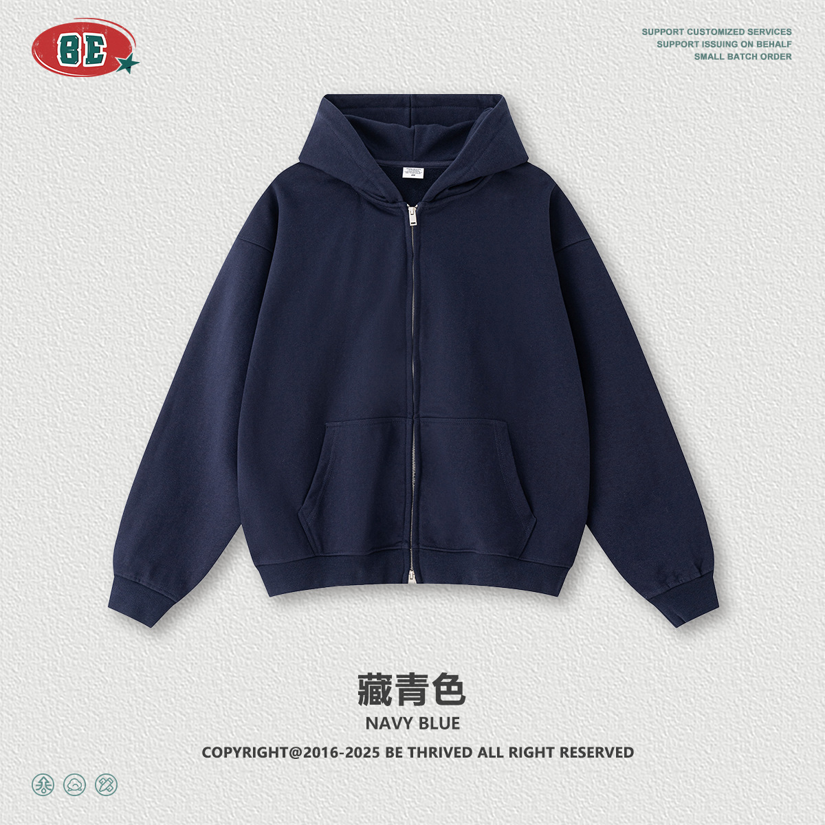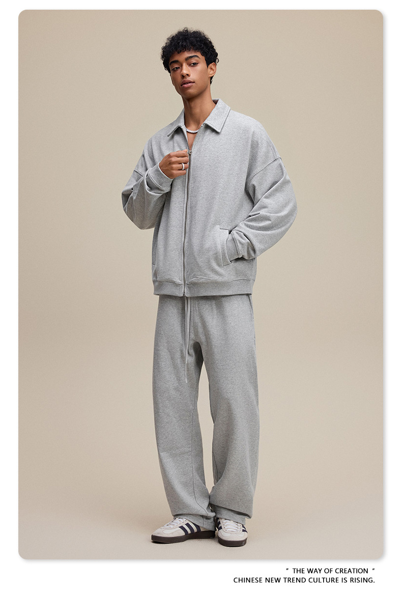 BE男装2025秋季美式宽松纯色加绒加厚拉链连帽卫衣休闲长裤套装男