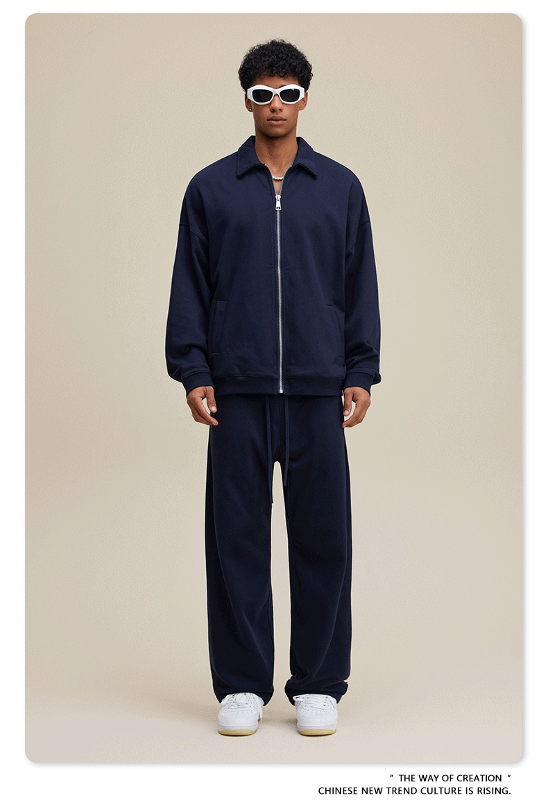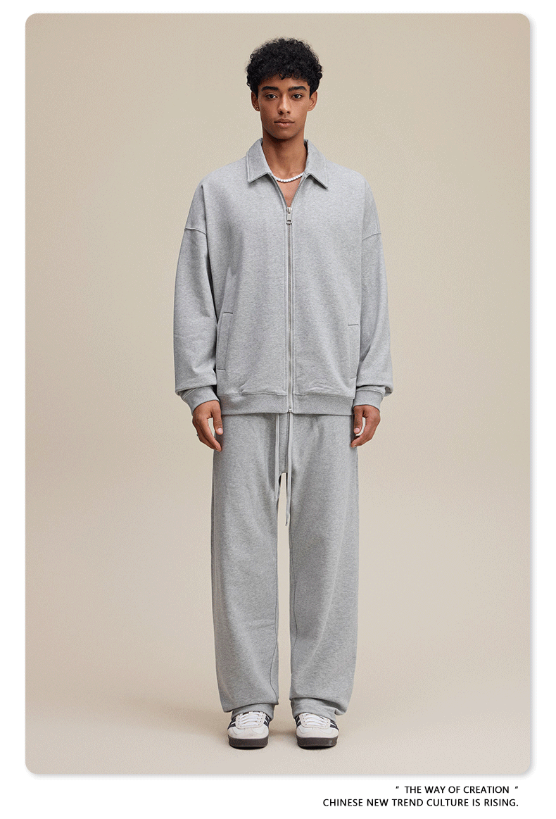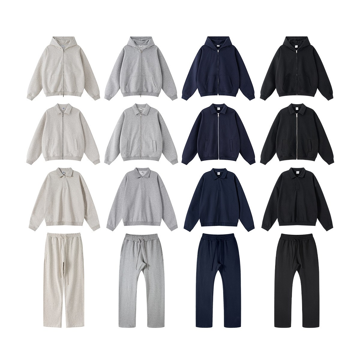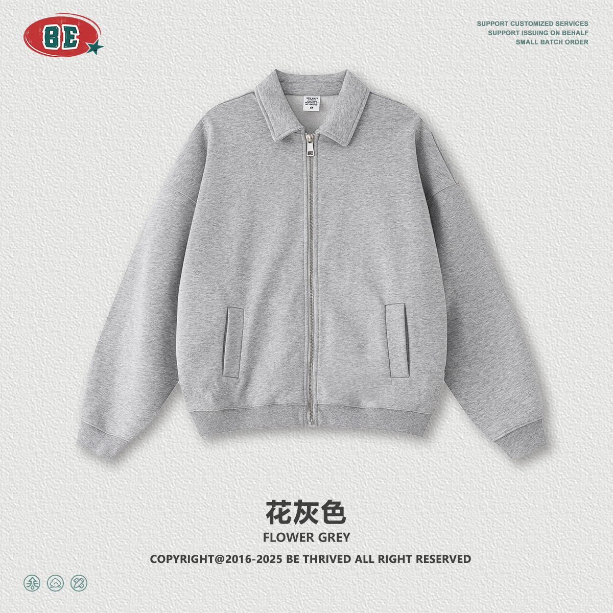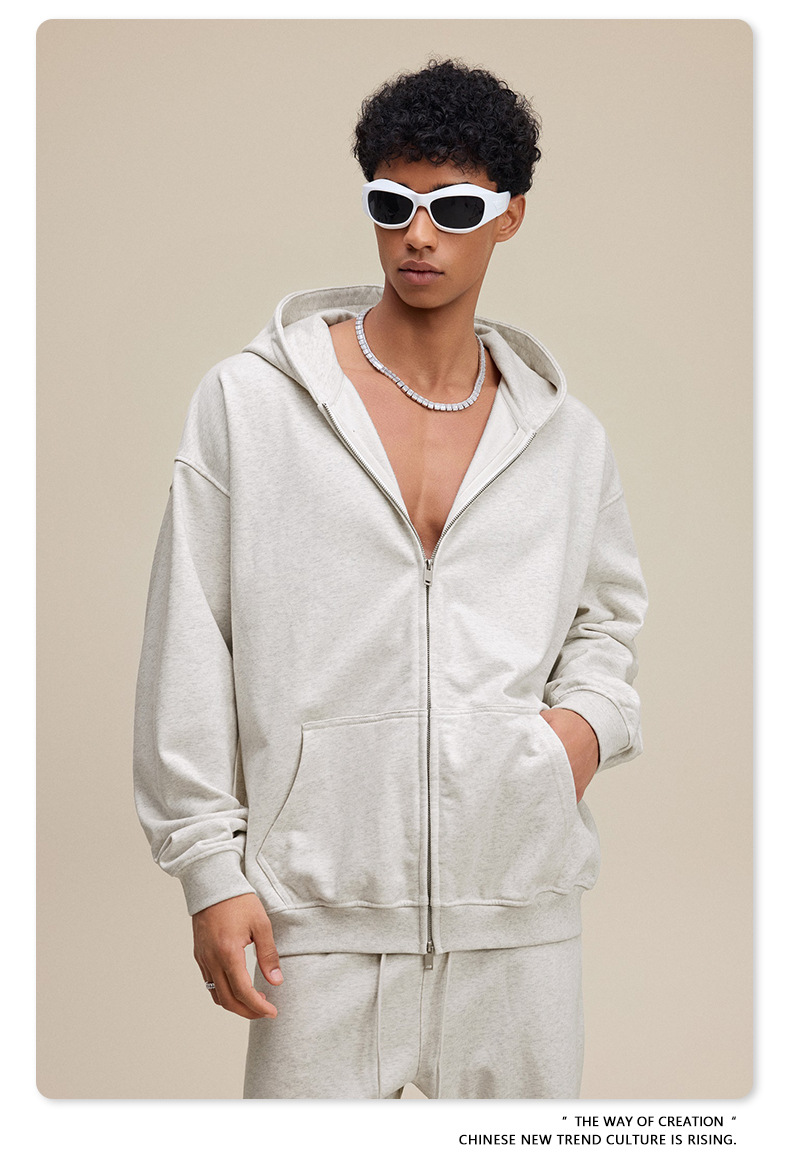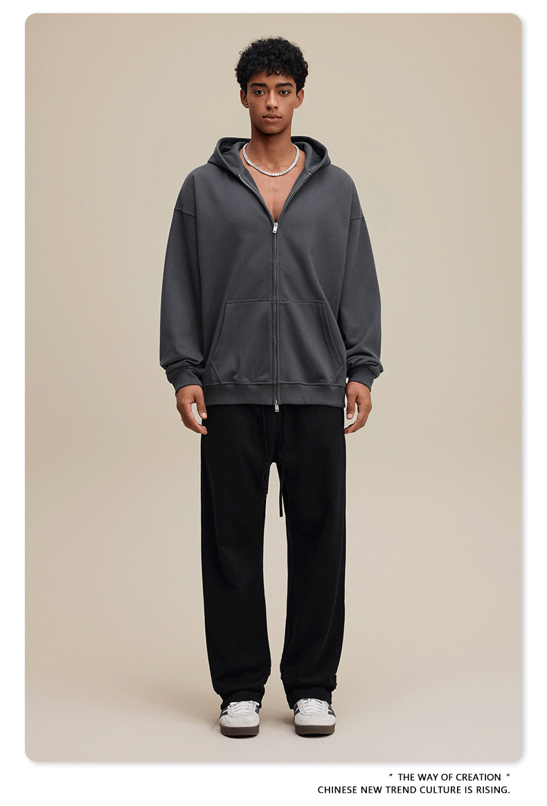 BE男装2025秋季美式宽松纯色加绒加厚拉链连帽卫衣休闲长裤套装男