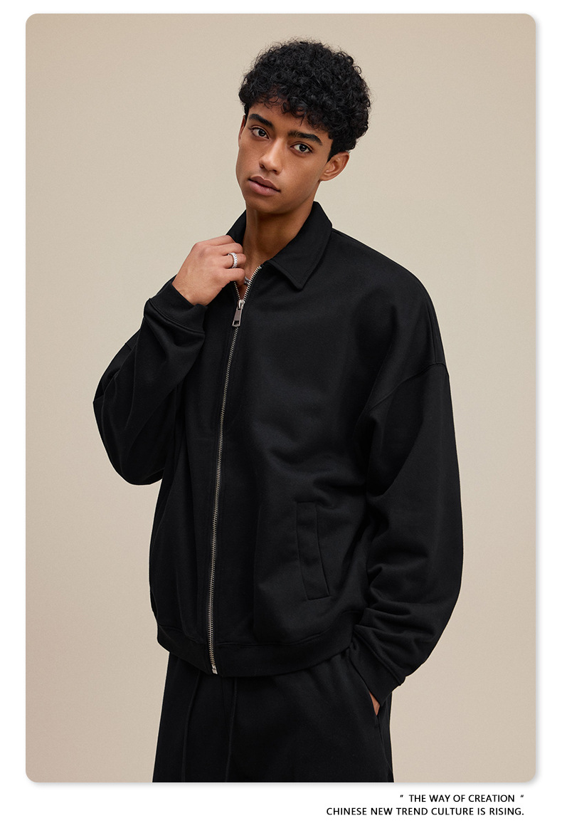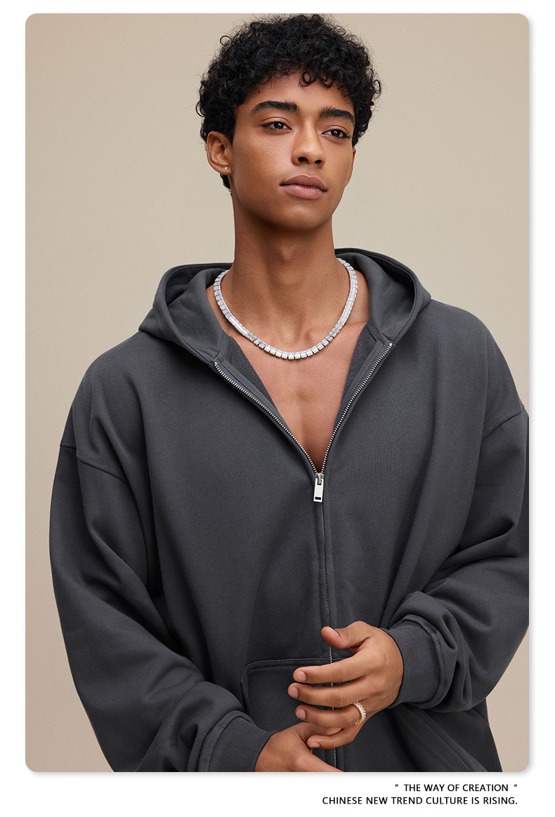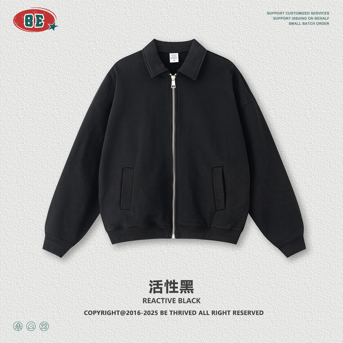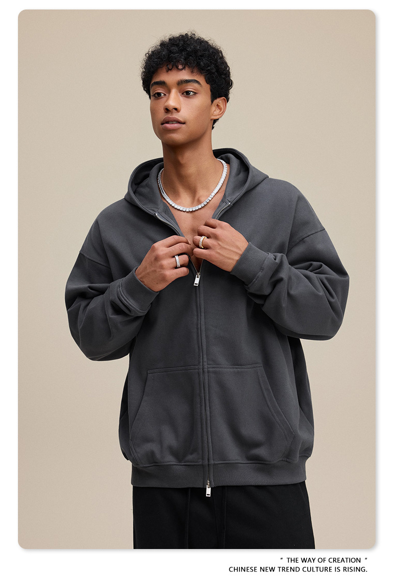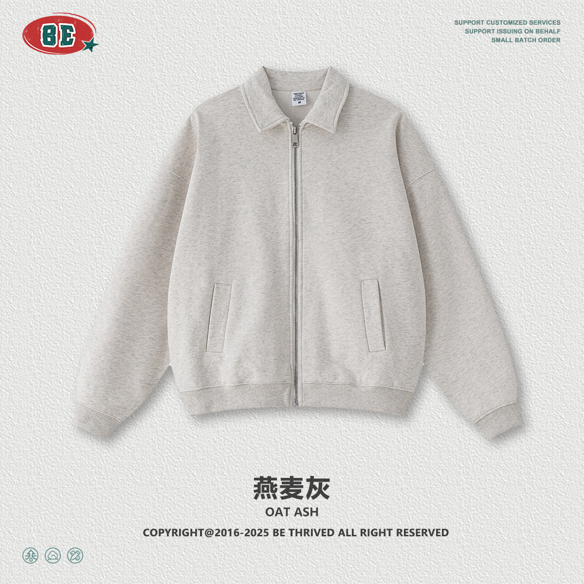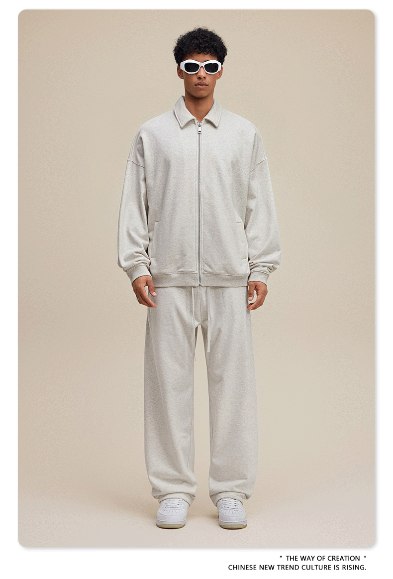 BE男装2025秋季美式宽松纯色加绒加厚拉链连帽卫衣休闲长裤套装男