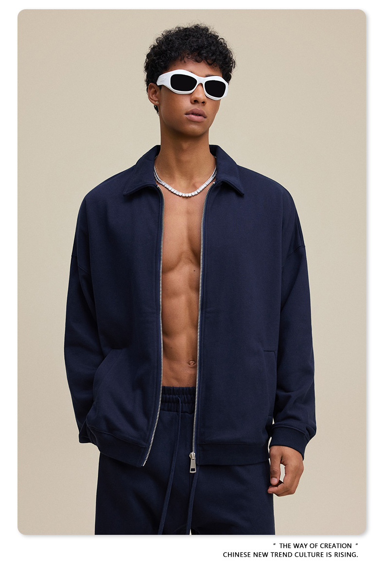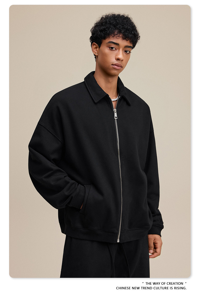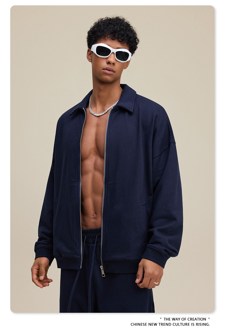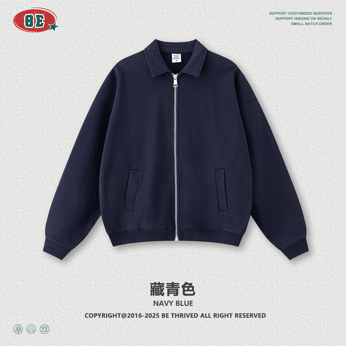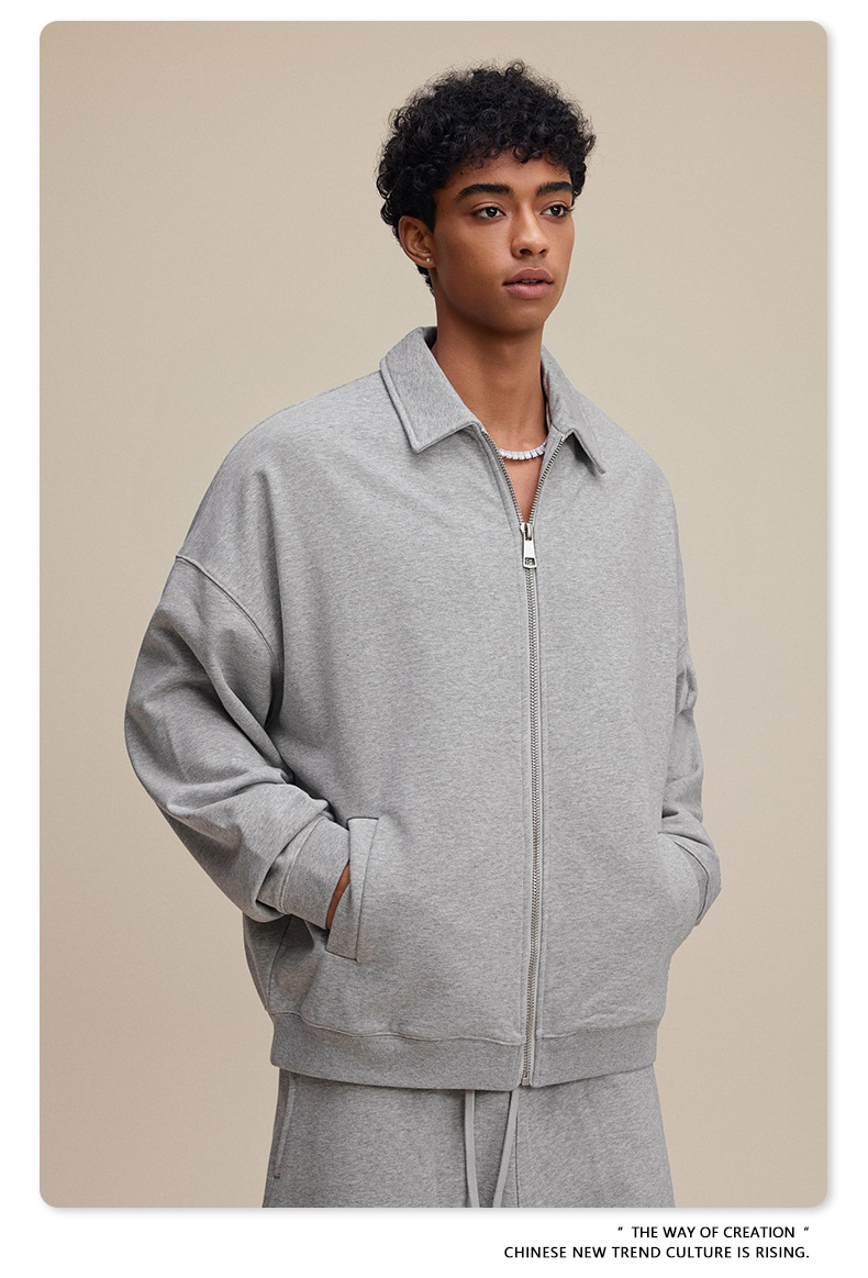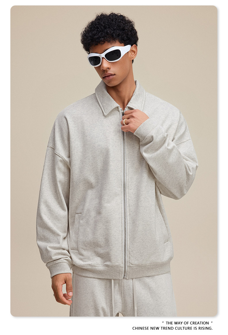 BE男装2025秋季美式宽松纯色加绒加厚拉链连帽卫衣休闲长裤套装男