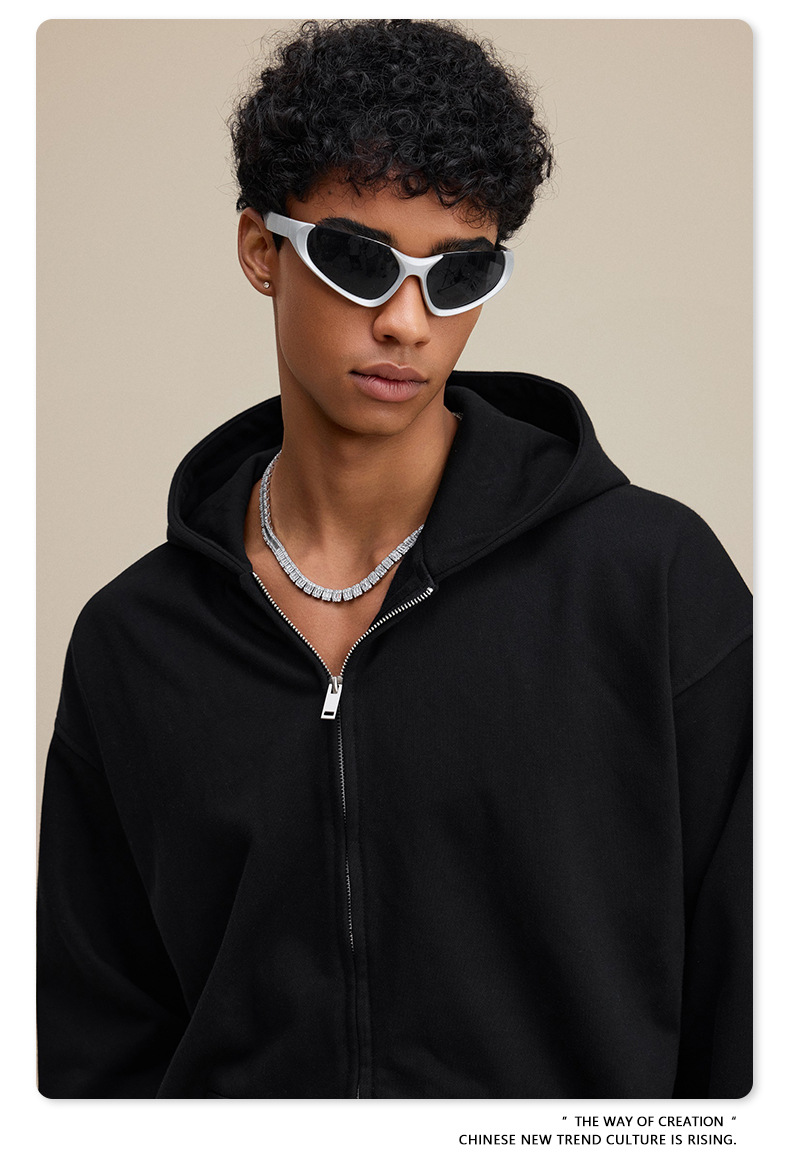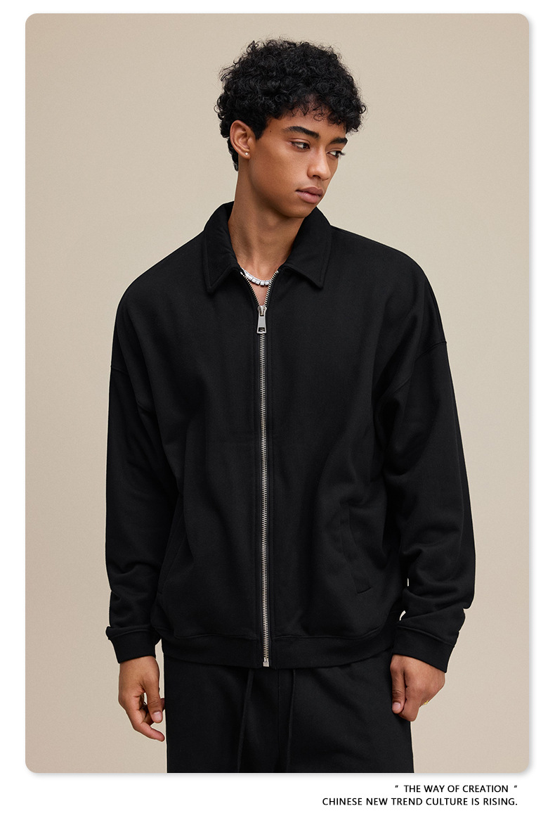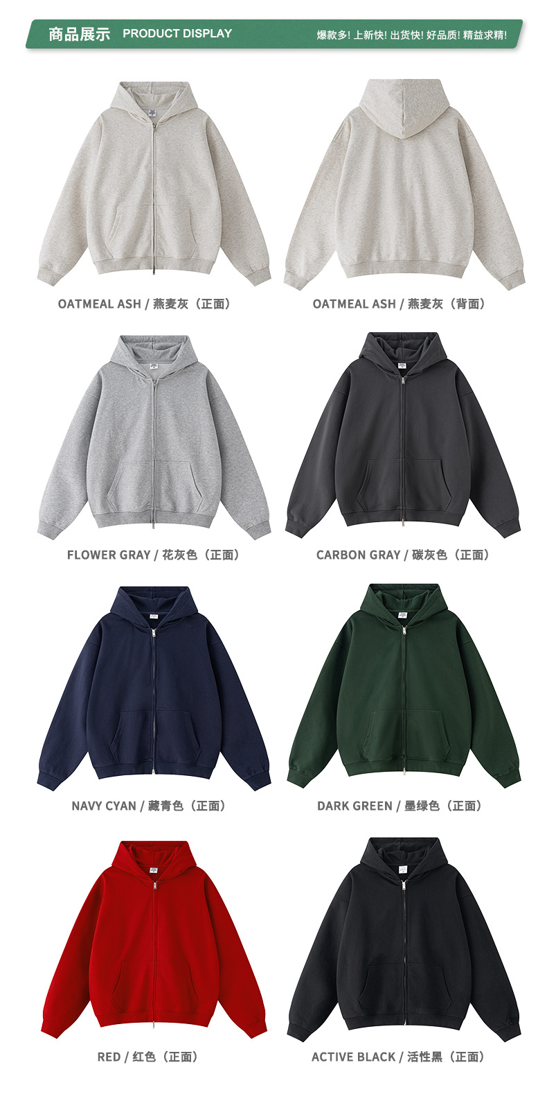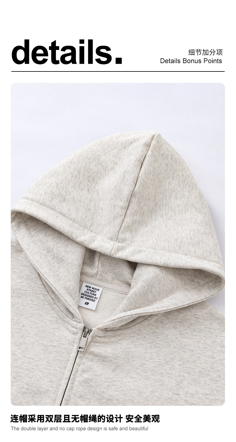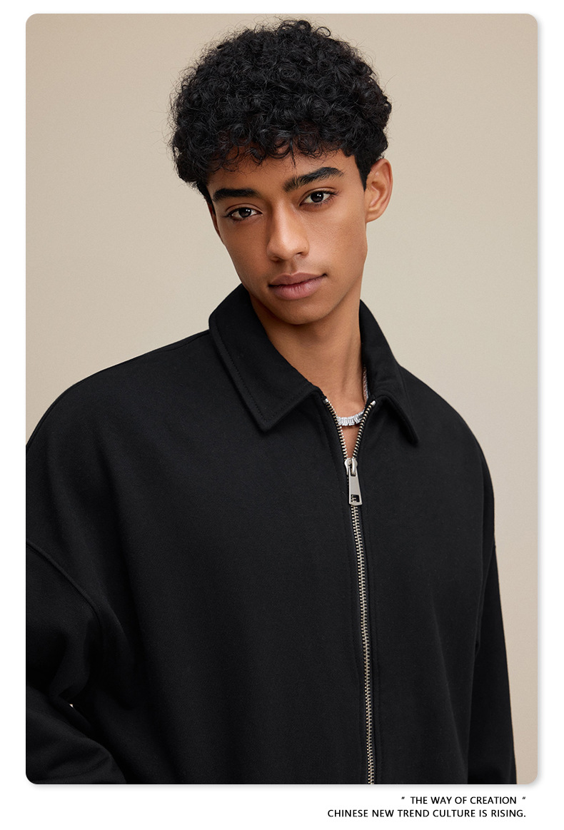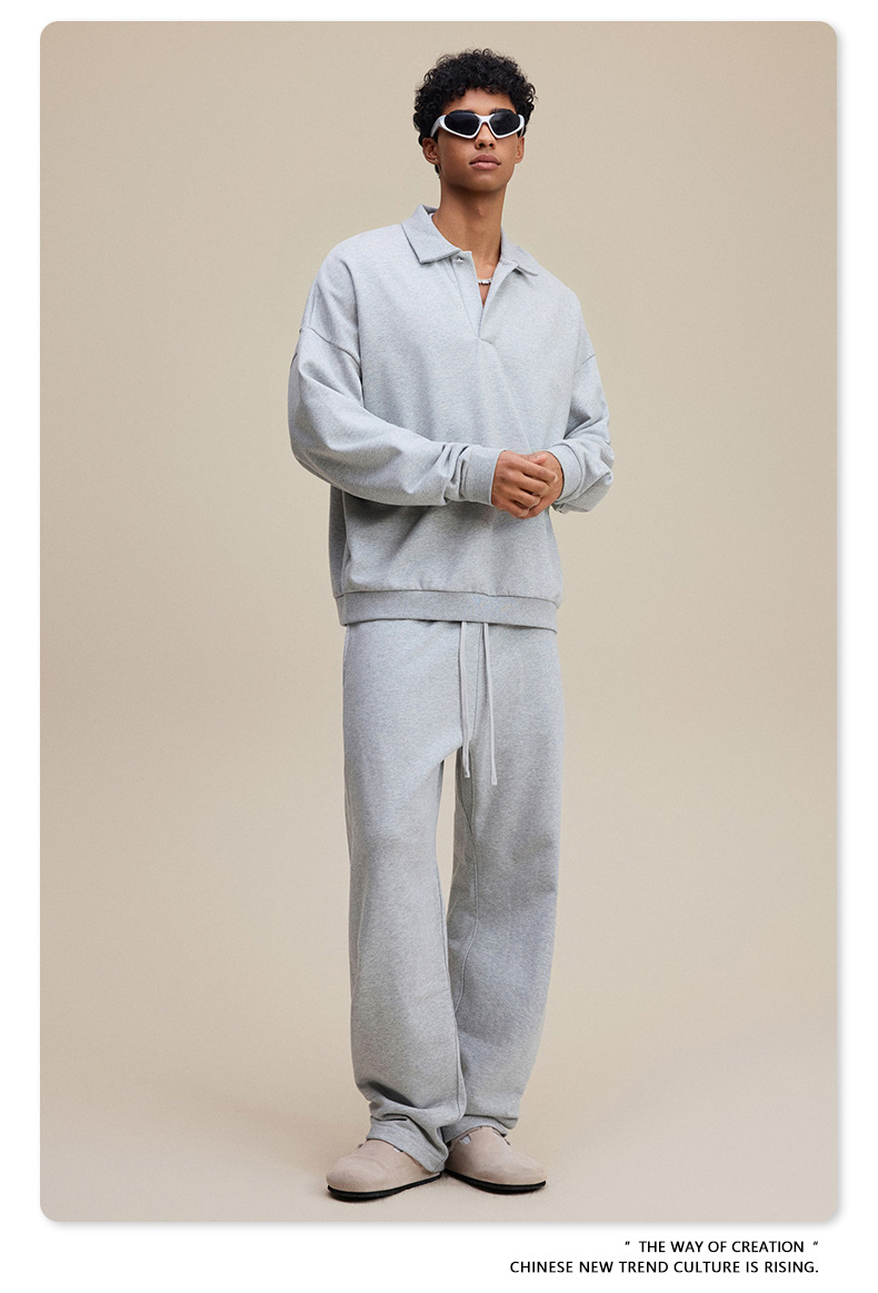 BE男装2025秋季美式宽松纯色加绒加厚拉链连帽卫衣休闲长裤套装男
