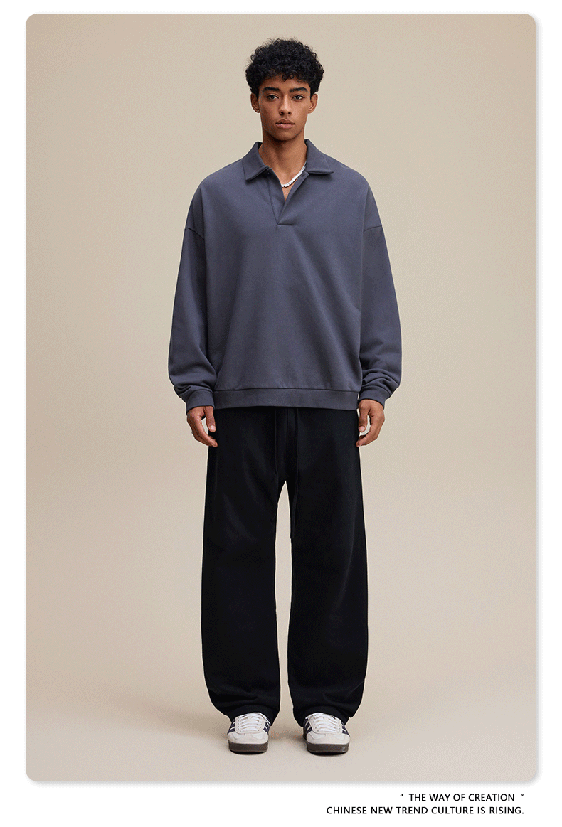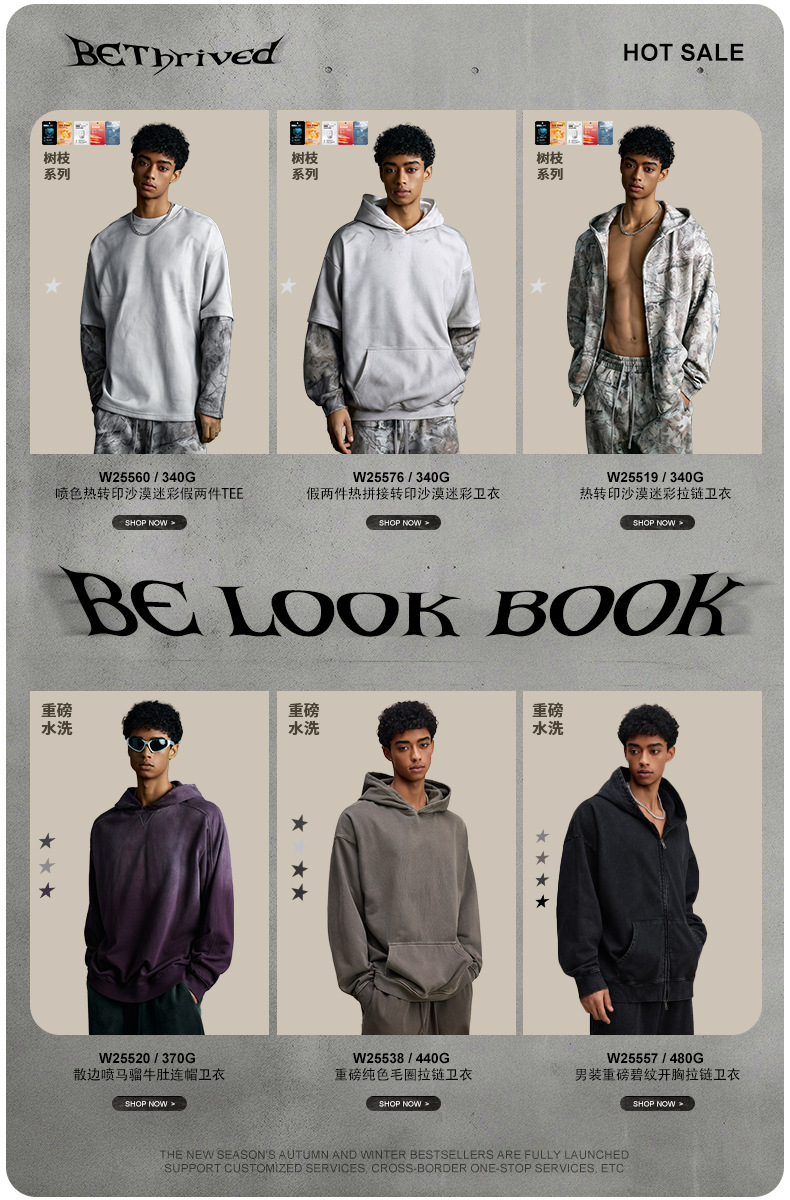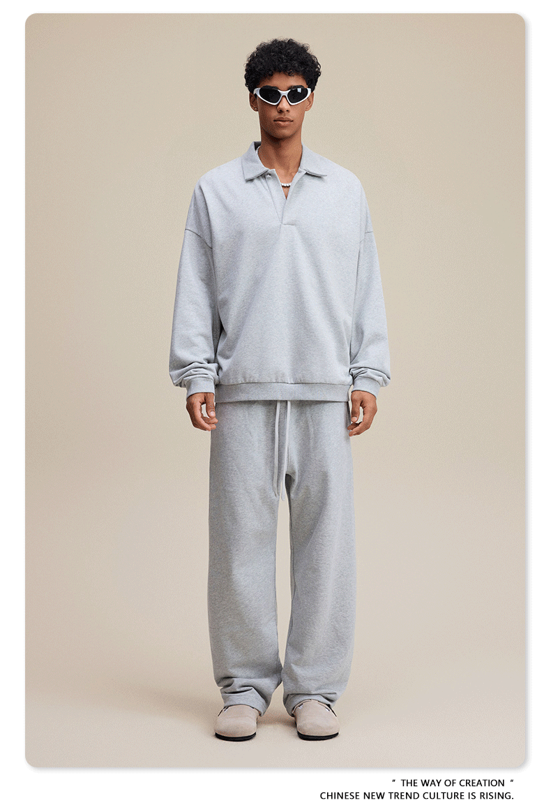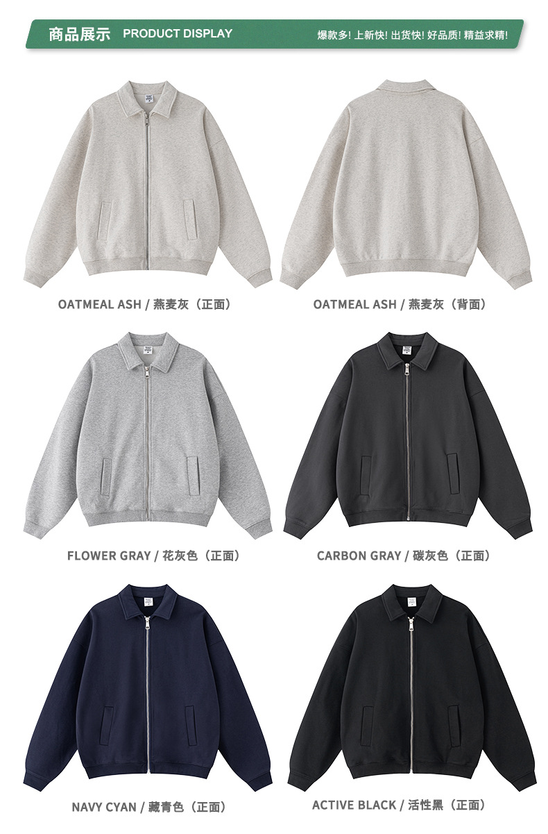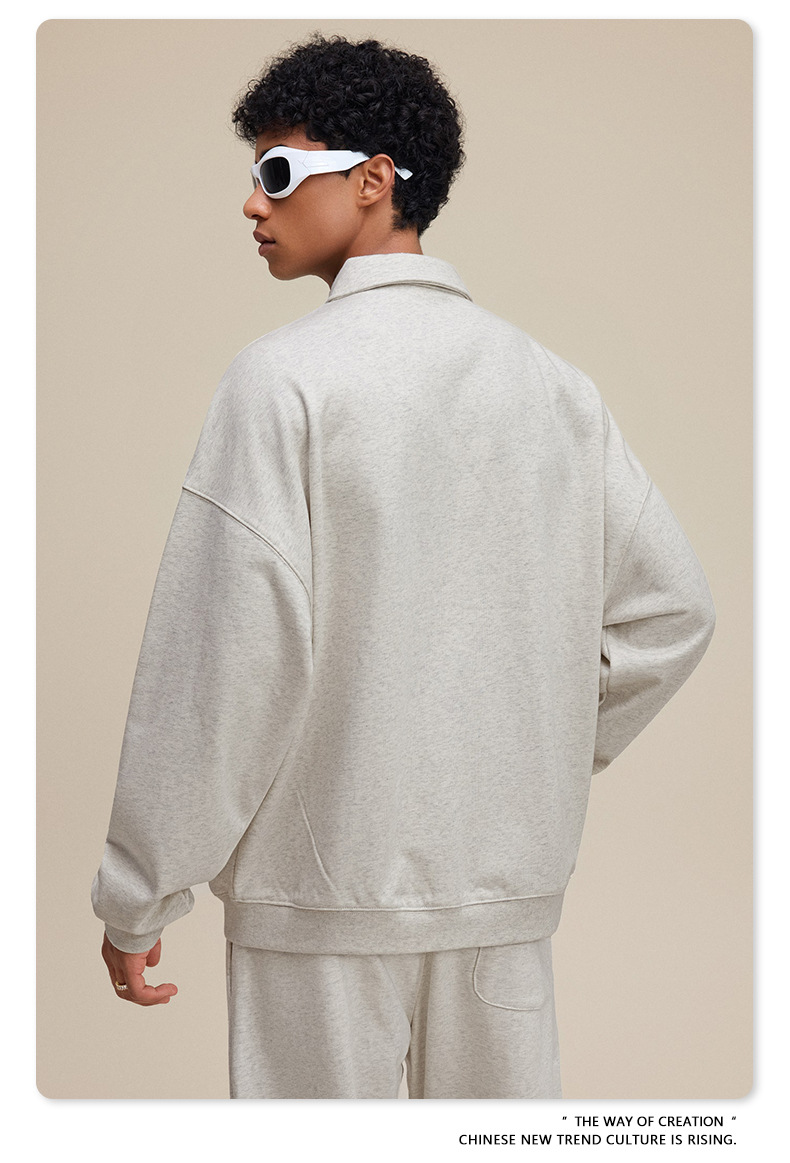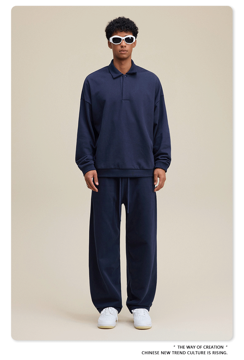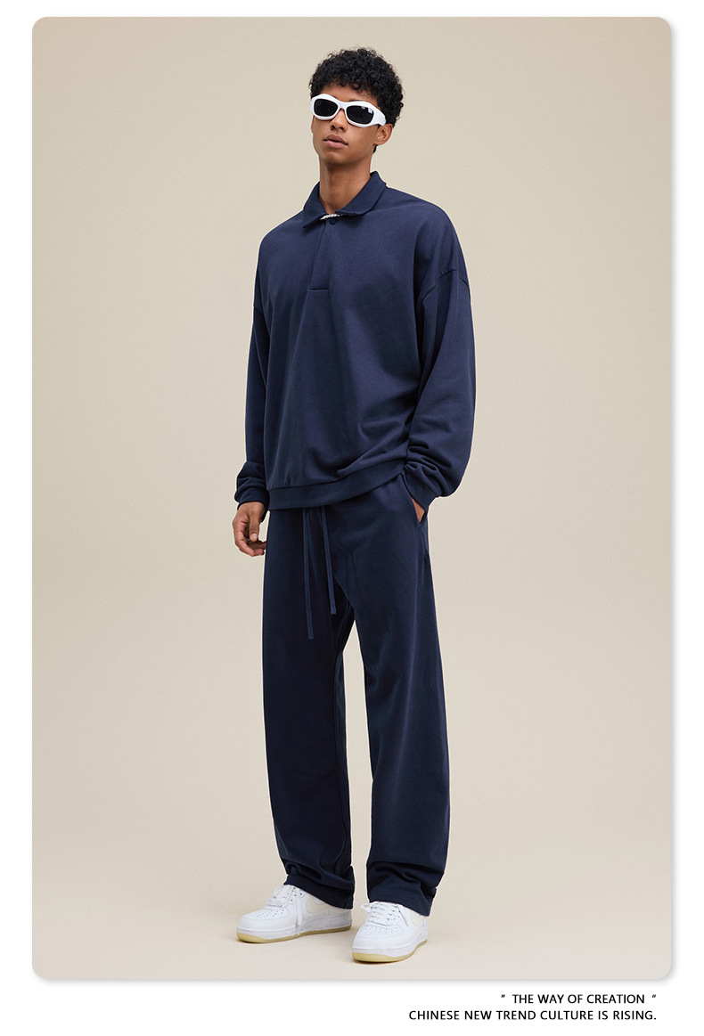 BE男装2025秋季美式宽松纯色加绒加厚拉链连帽卫衣休闲长裤套装男