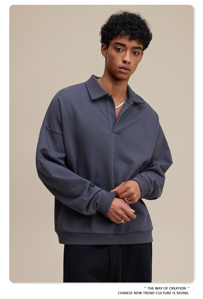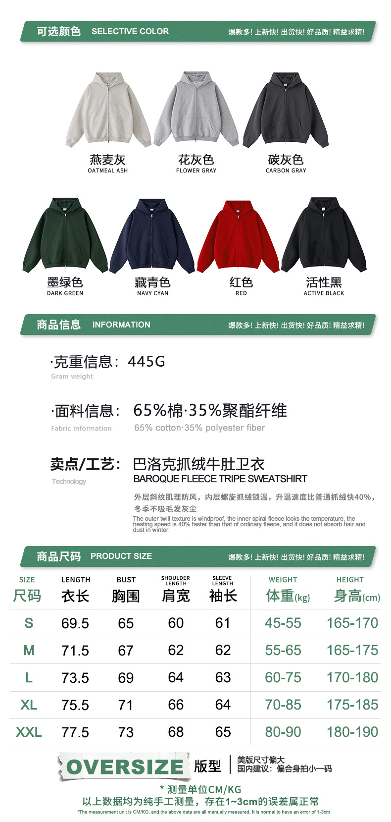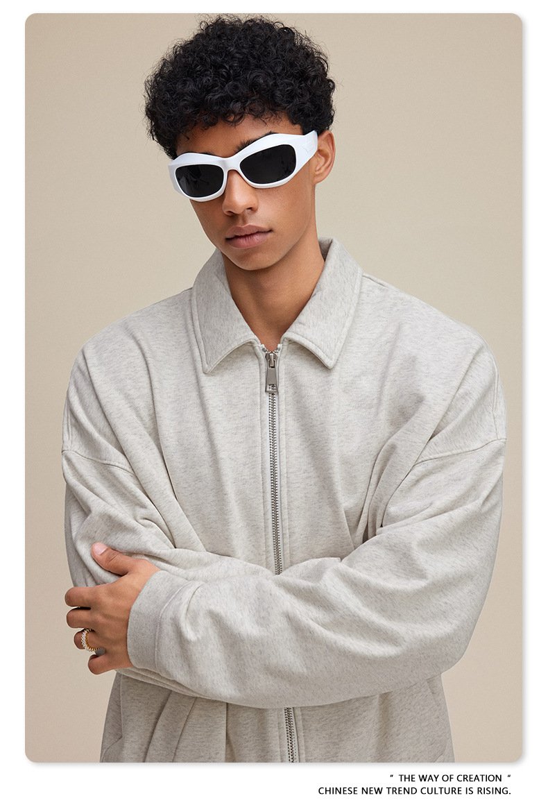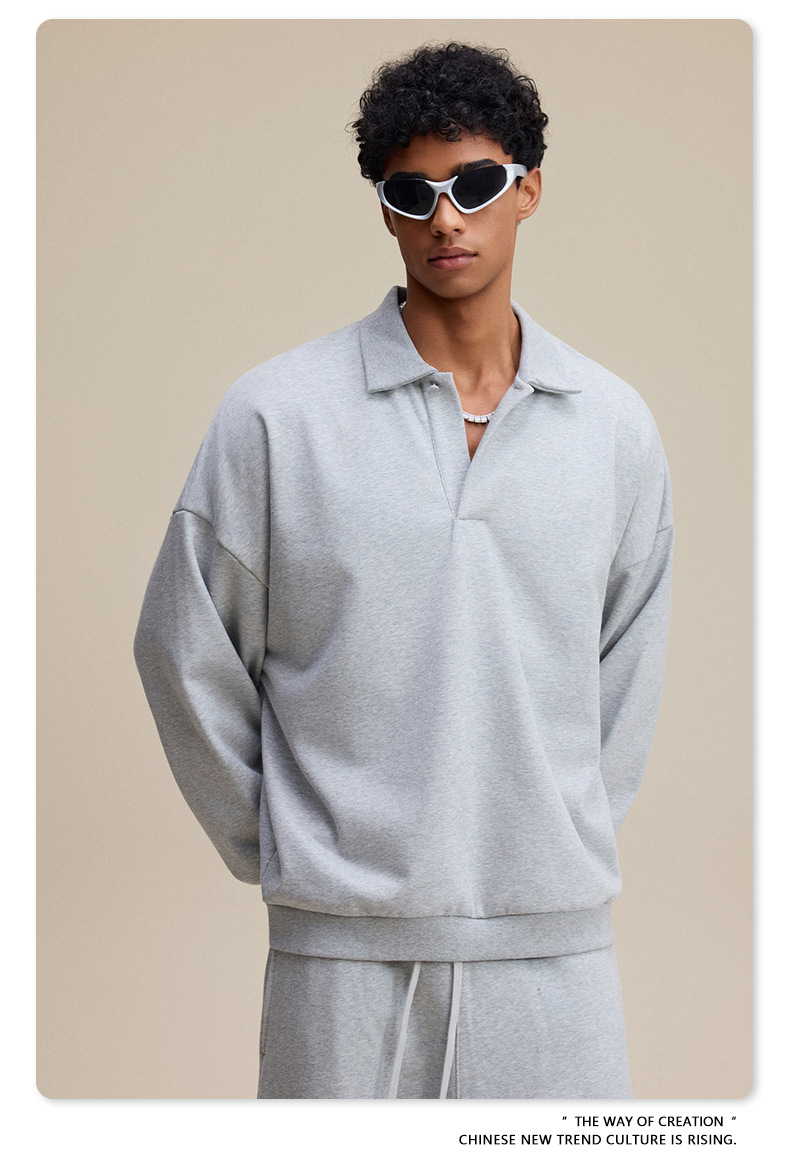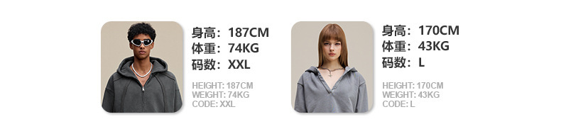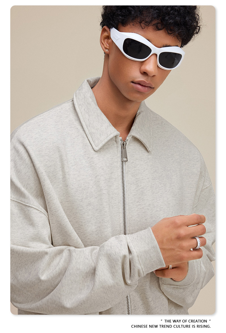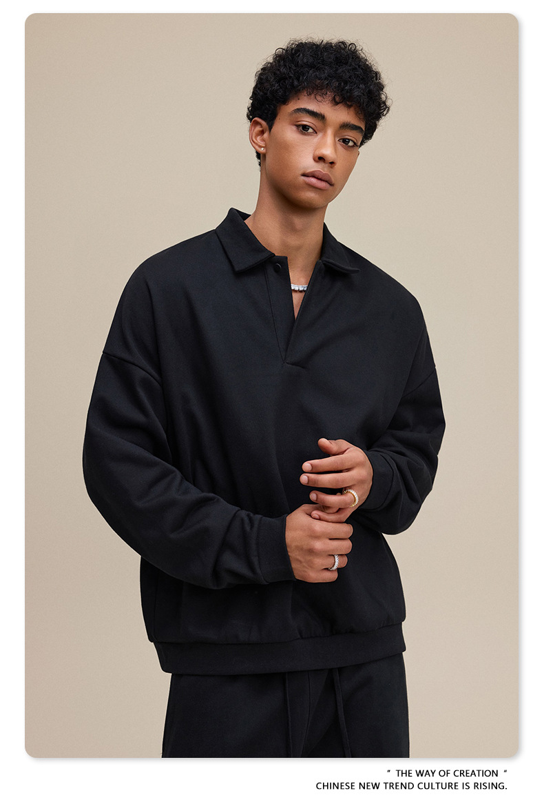 BE男装2025秋季美式宽松纯色加绒加厚拉链连帽卫衣休闲长裤套装男
