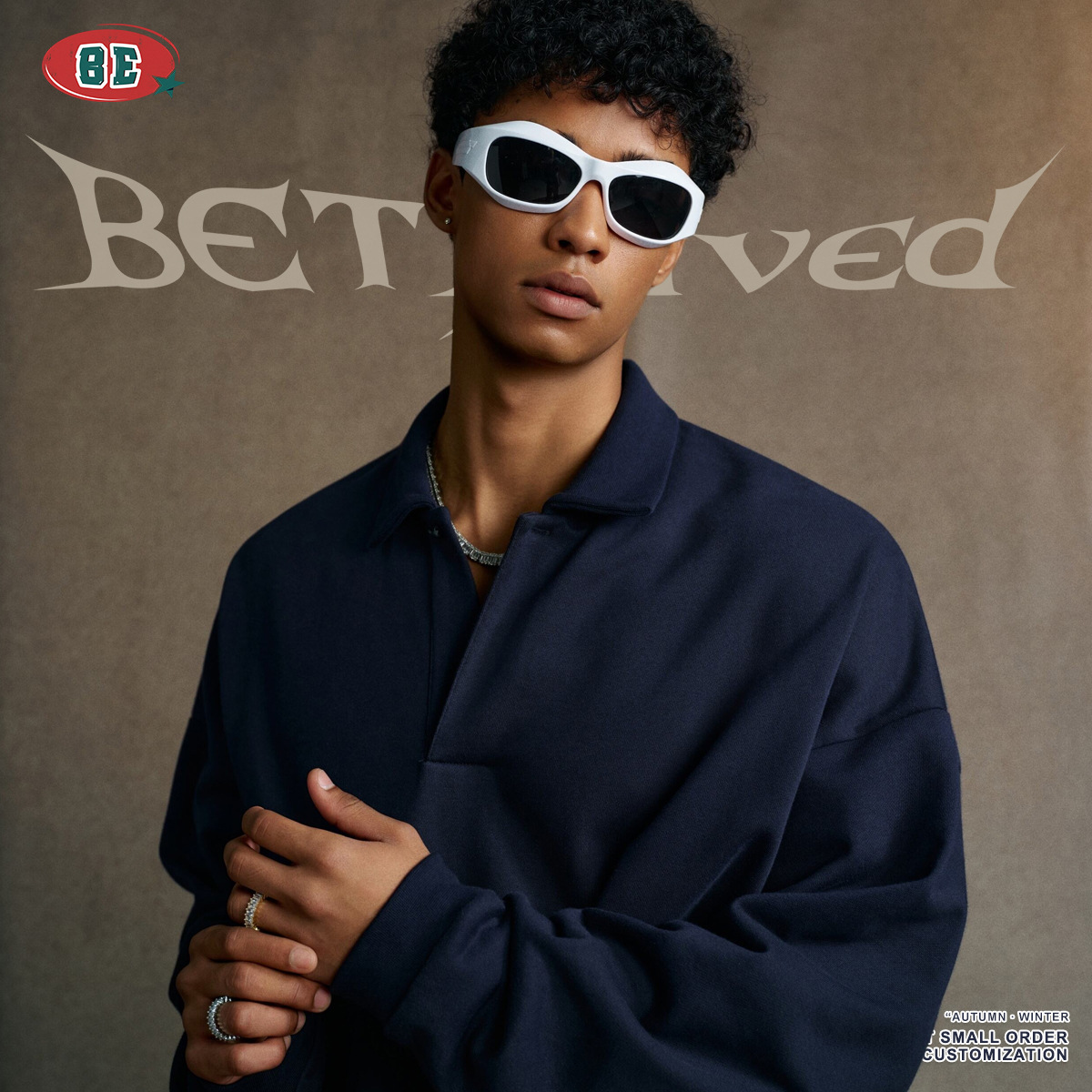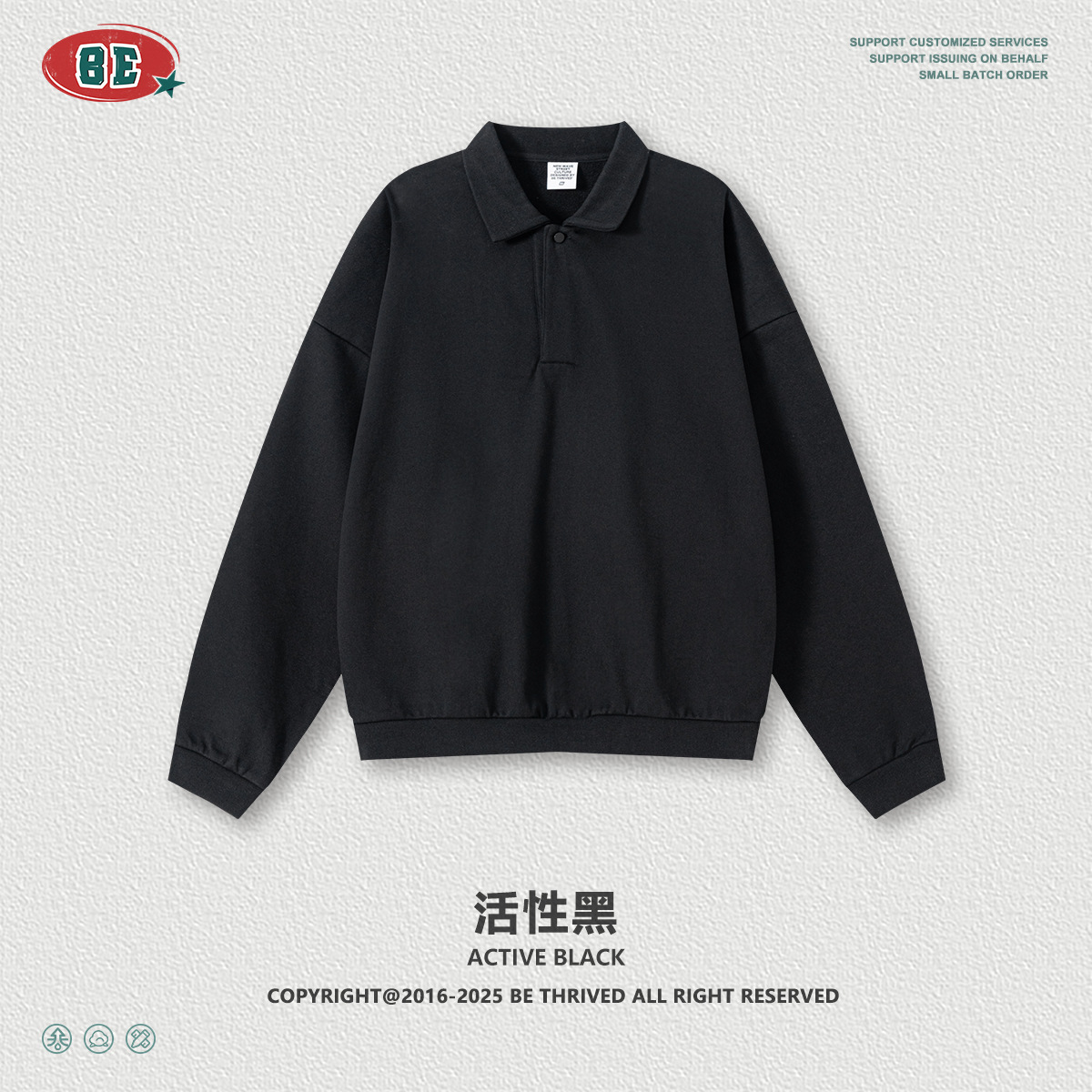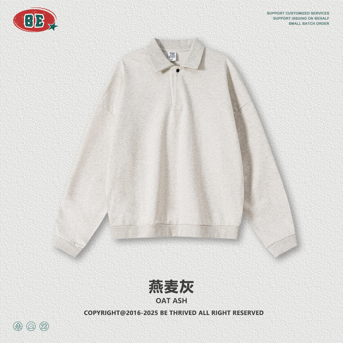 BE男装2025春季衣服美式纯色纯棉长袖男式纯棉宽松长袖情侣t恤男