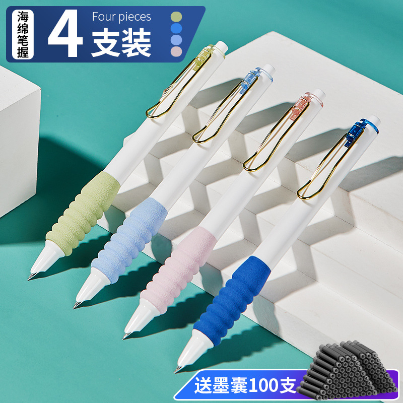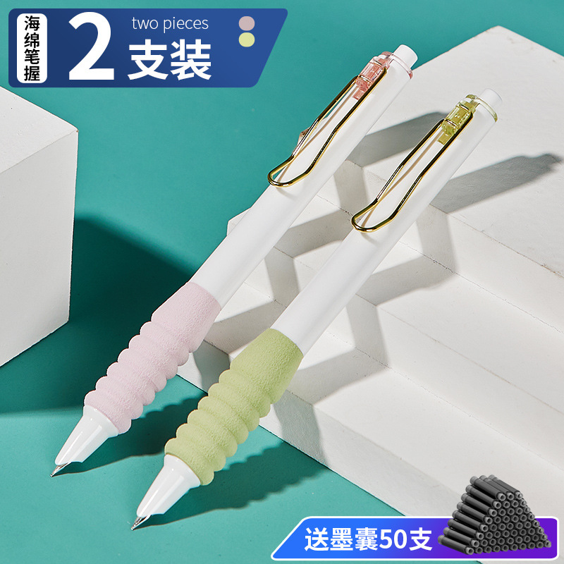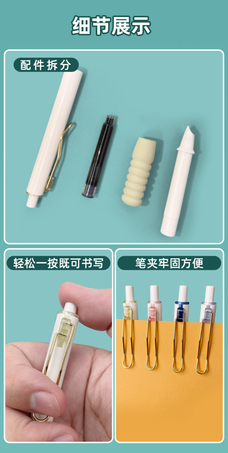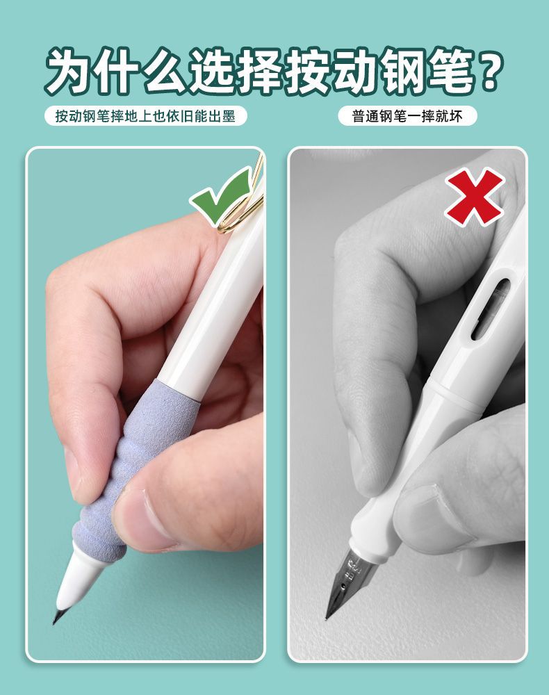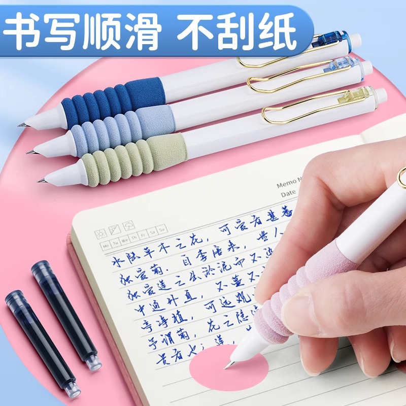 新款按动钢笔暗尖0.38mm特细墨囊墨水笔学生初学日常书法练字钢笔