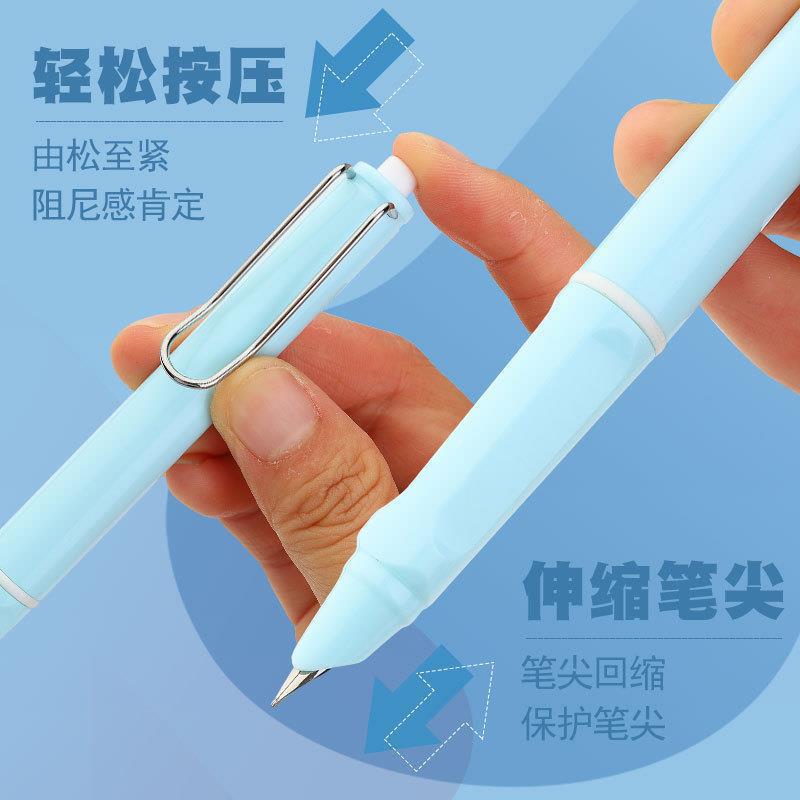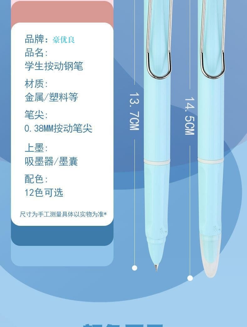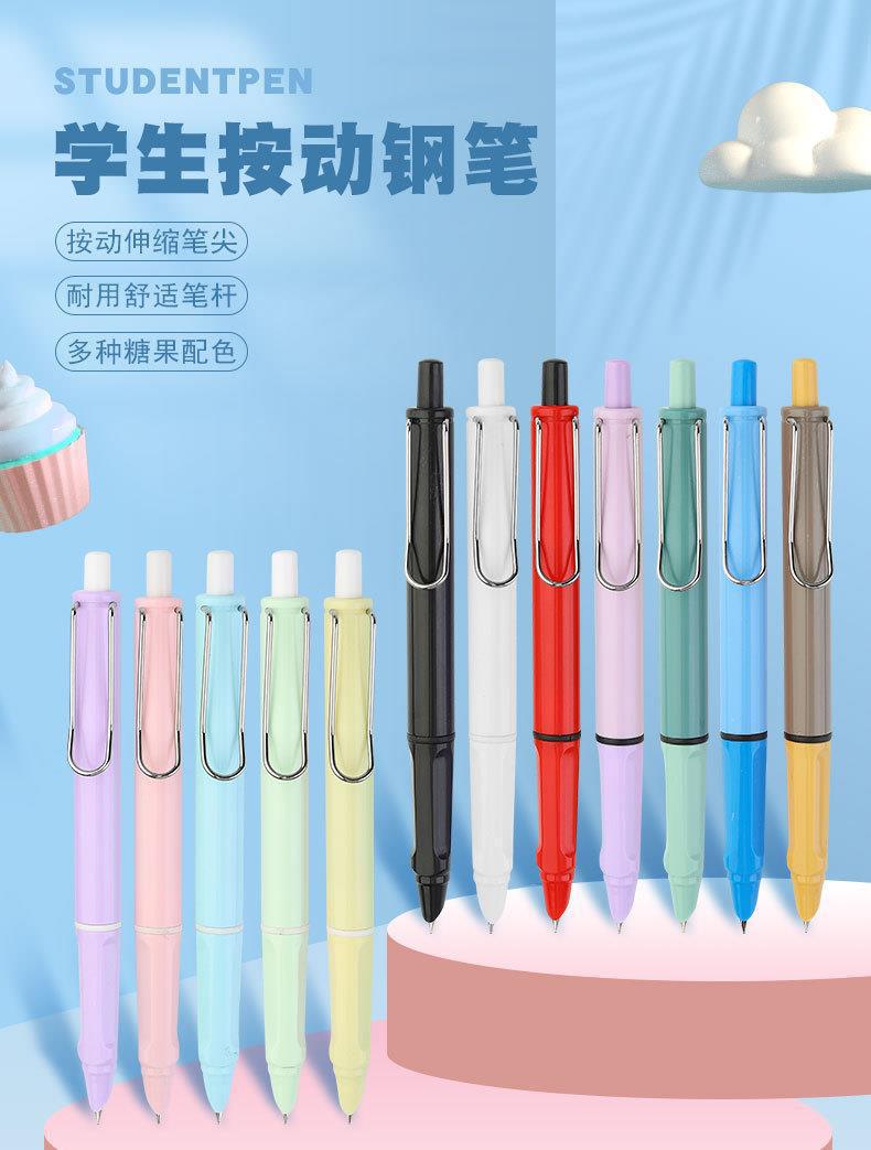 新款按动钢笔暗尖0.38特细笔尖学生日常书写练字按压钢笔可换墨囊