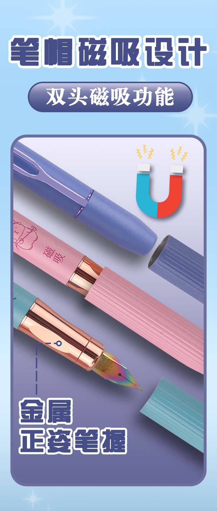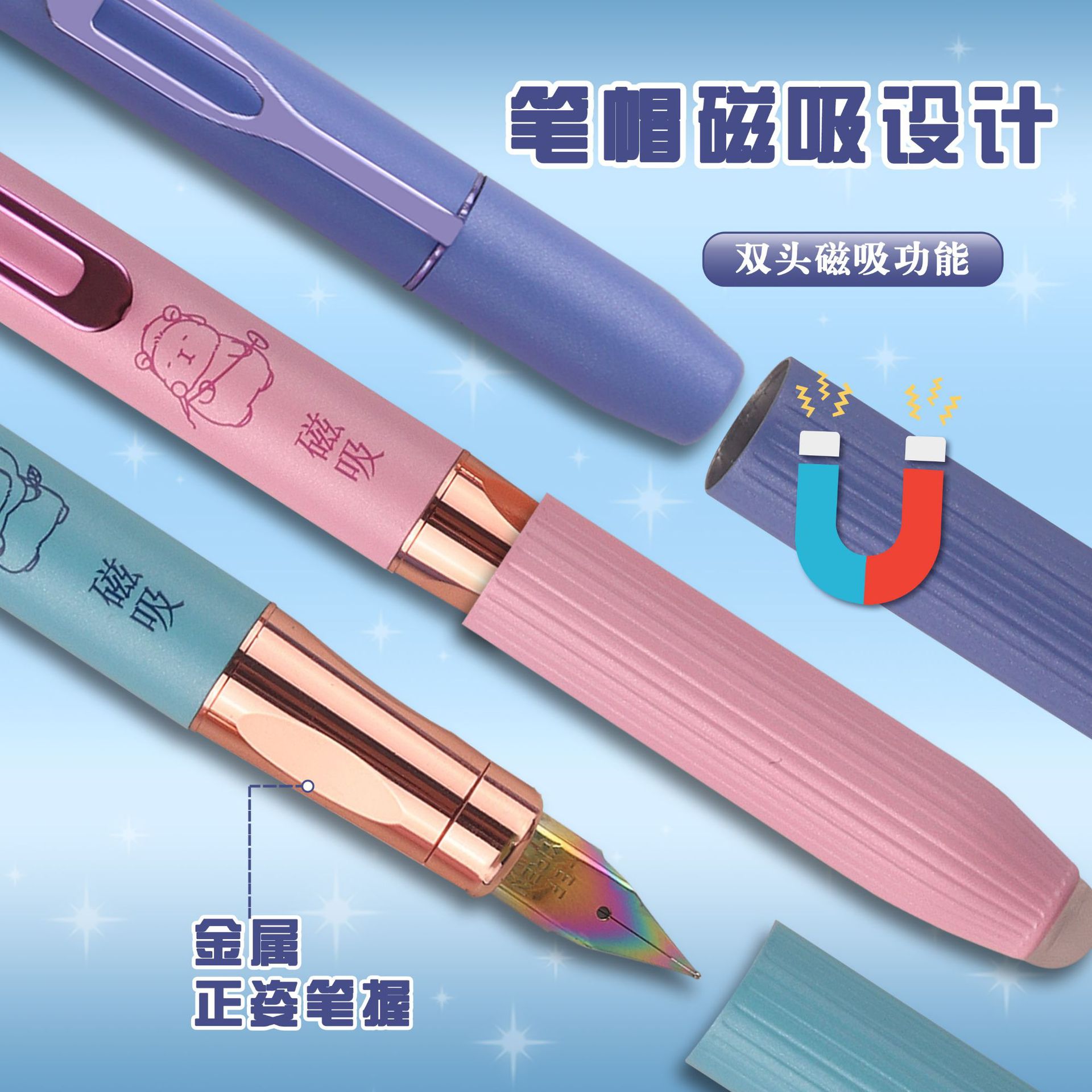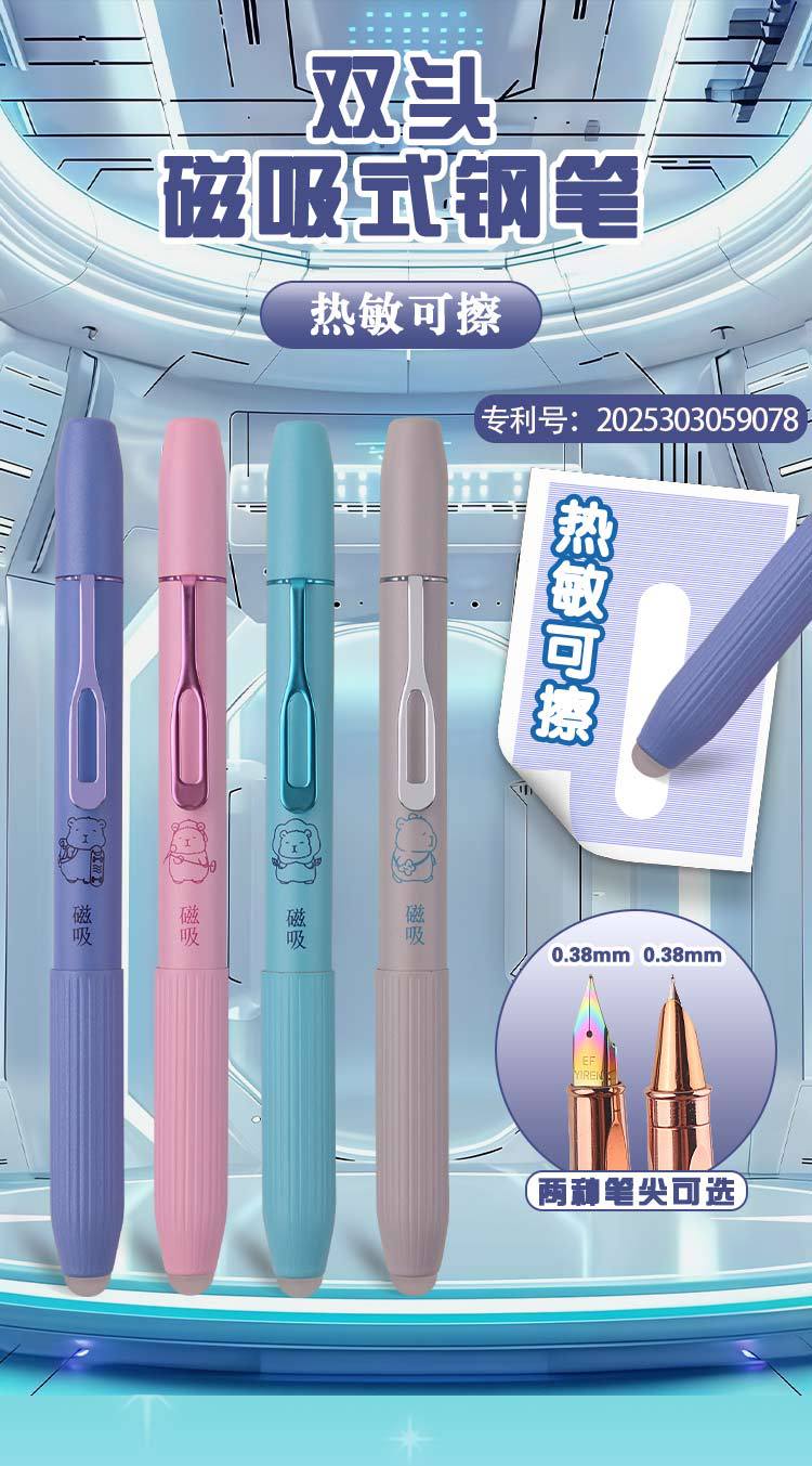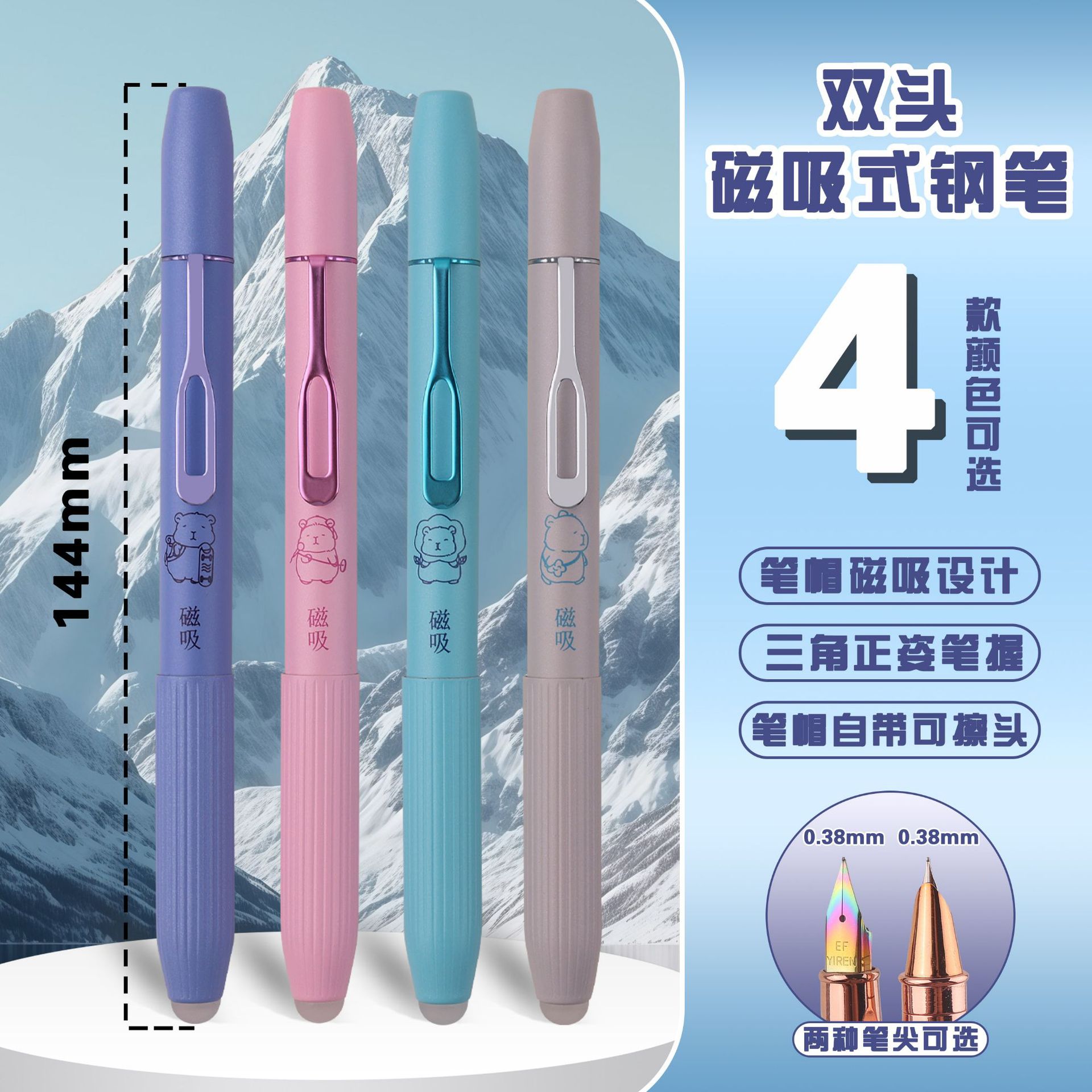 厂家供应莫兰迪磁吸钢笔小学生金属材质大EF笔尖双头磁吸式钢笔