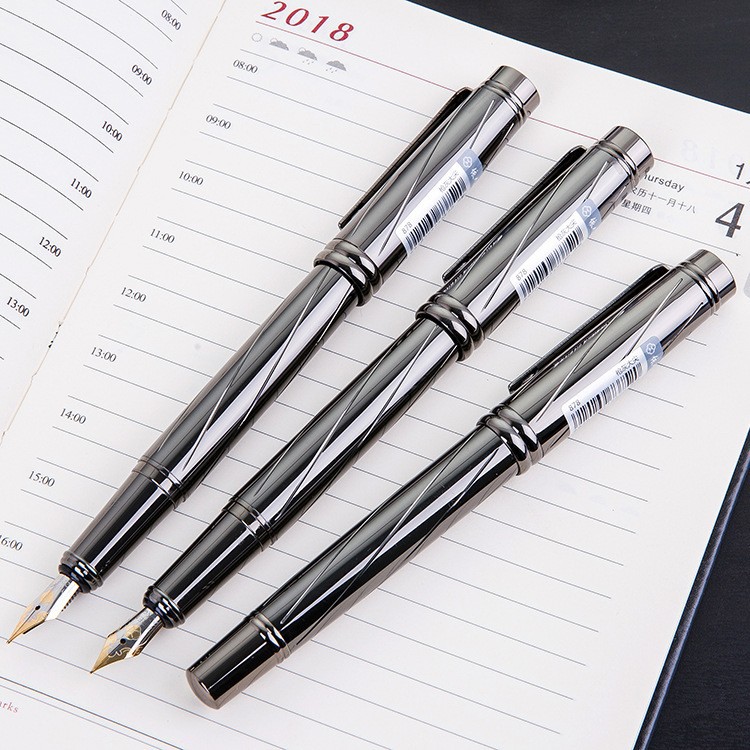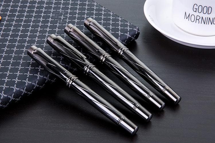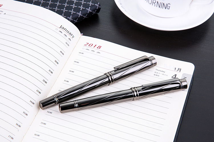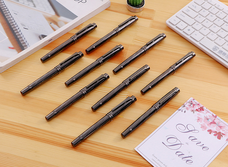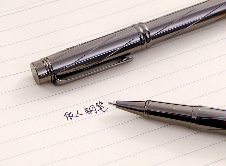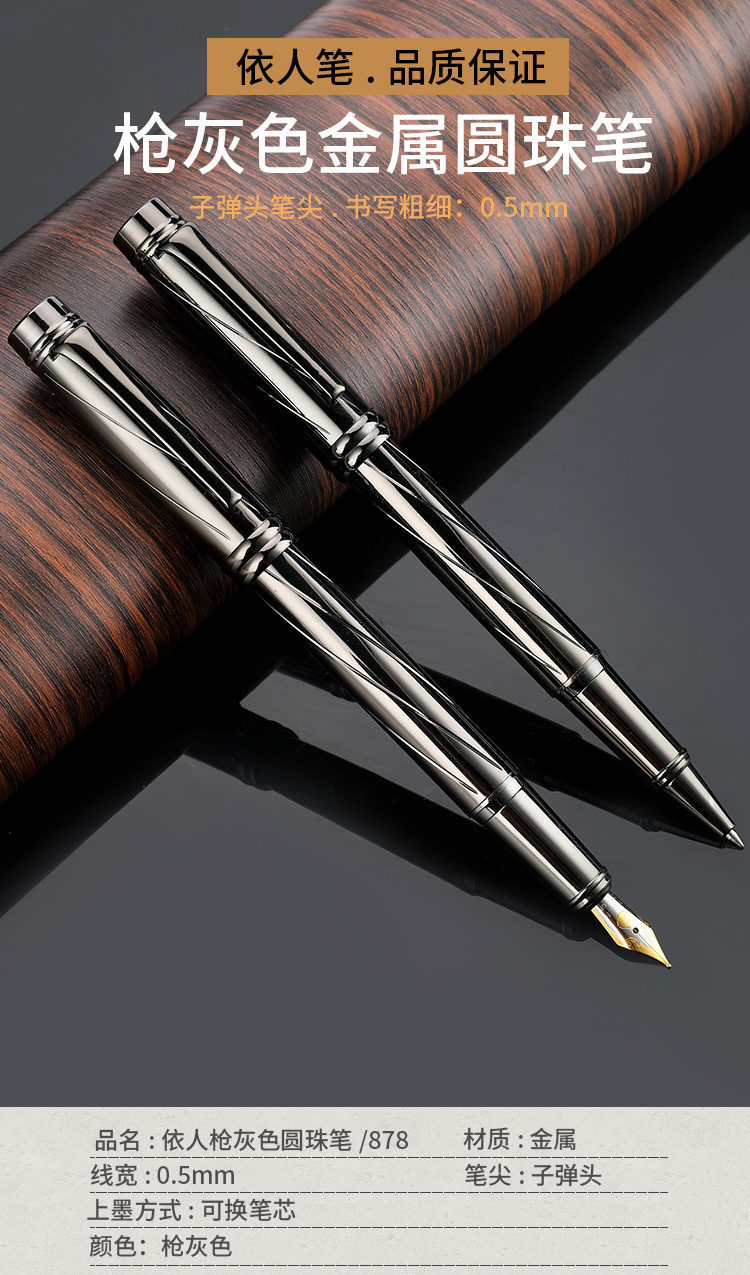 依人878款镀银钢笔商务男士宝珠笔金属黑色中性签字笔办公用水笔