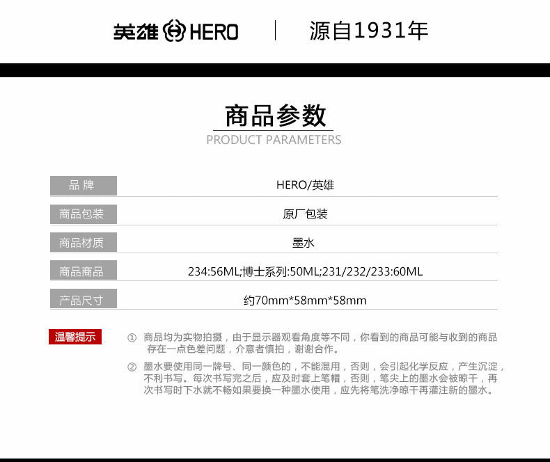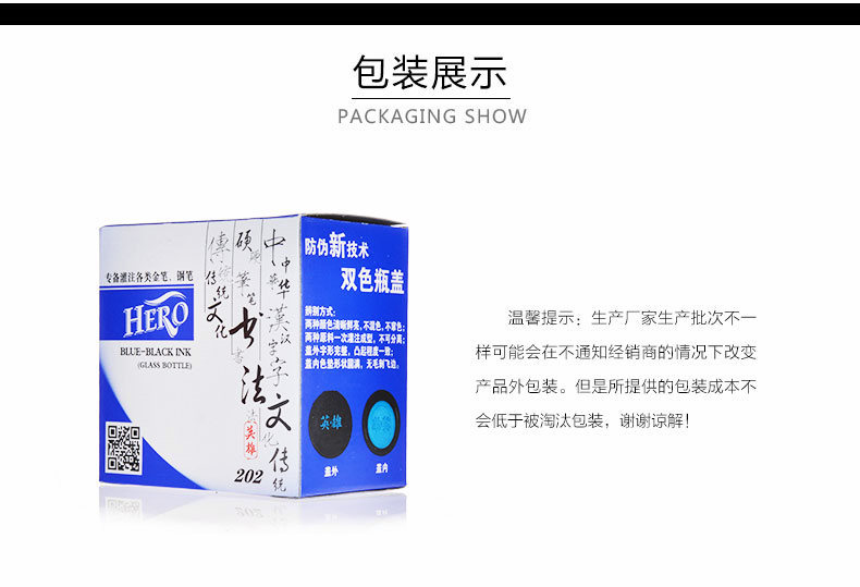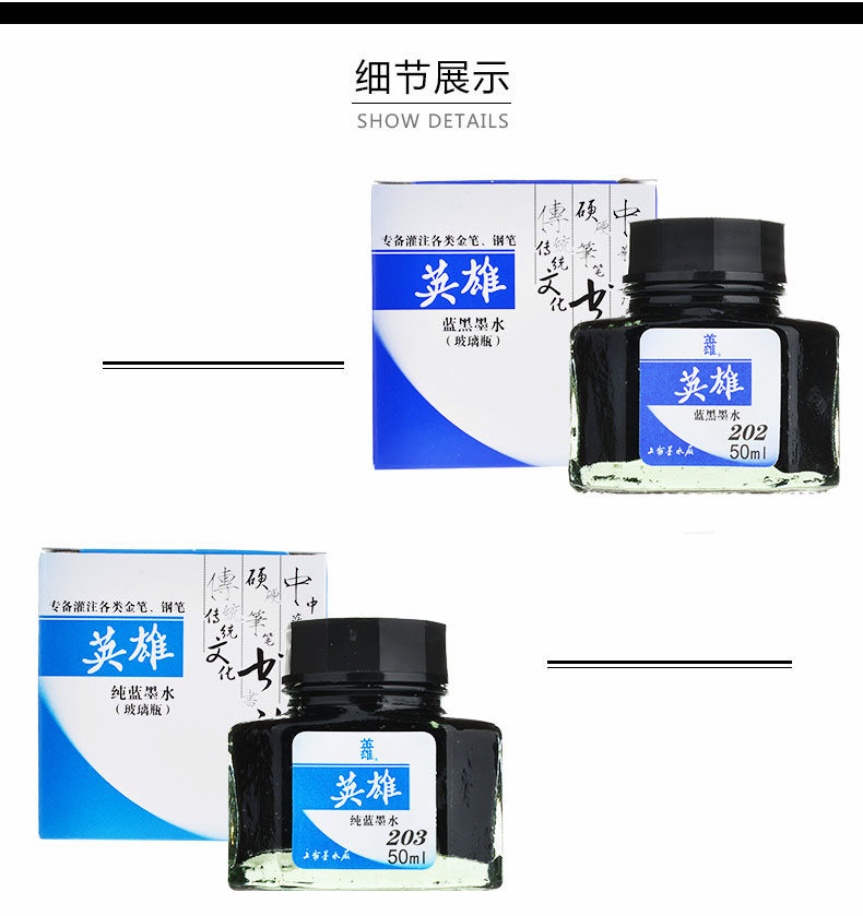 英雄hero墨水钢笔学生用204钢笔墨水非碳素黑色红色纯蓝墨水不堵