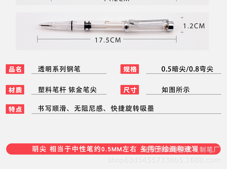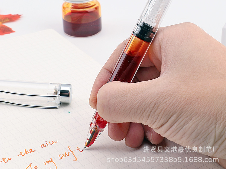 大容量练字弯头瘦金体书法成人办公教师钢笔透明活塞美工弯尖钢笔