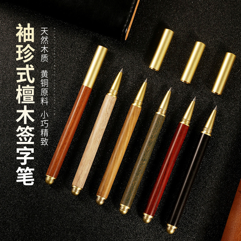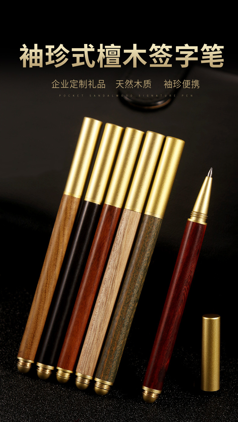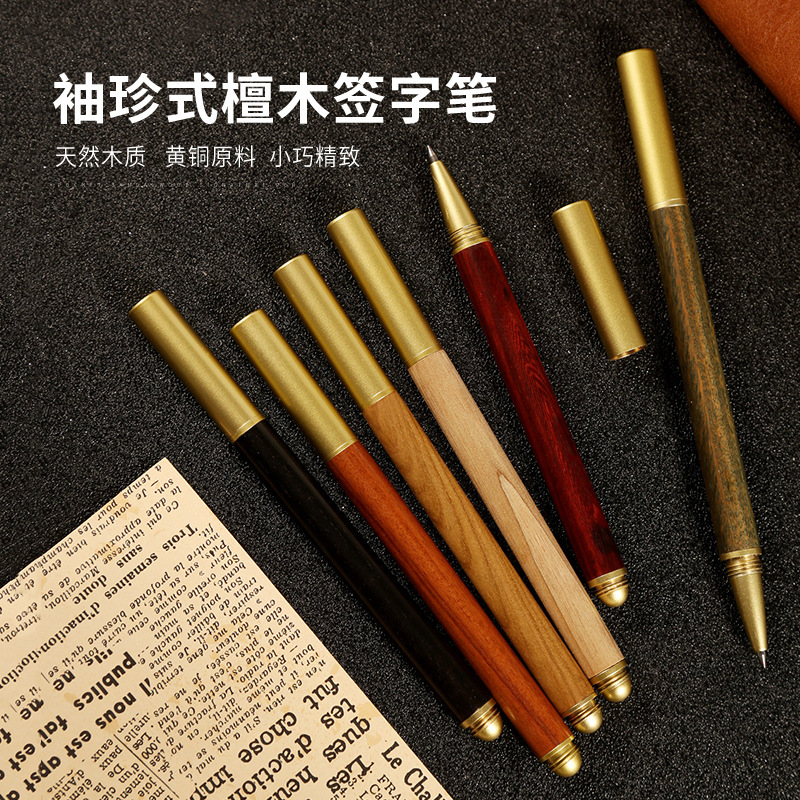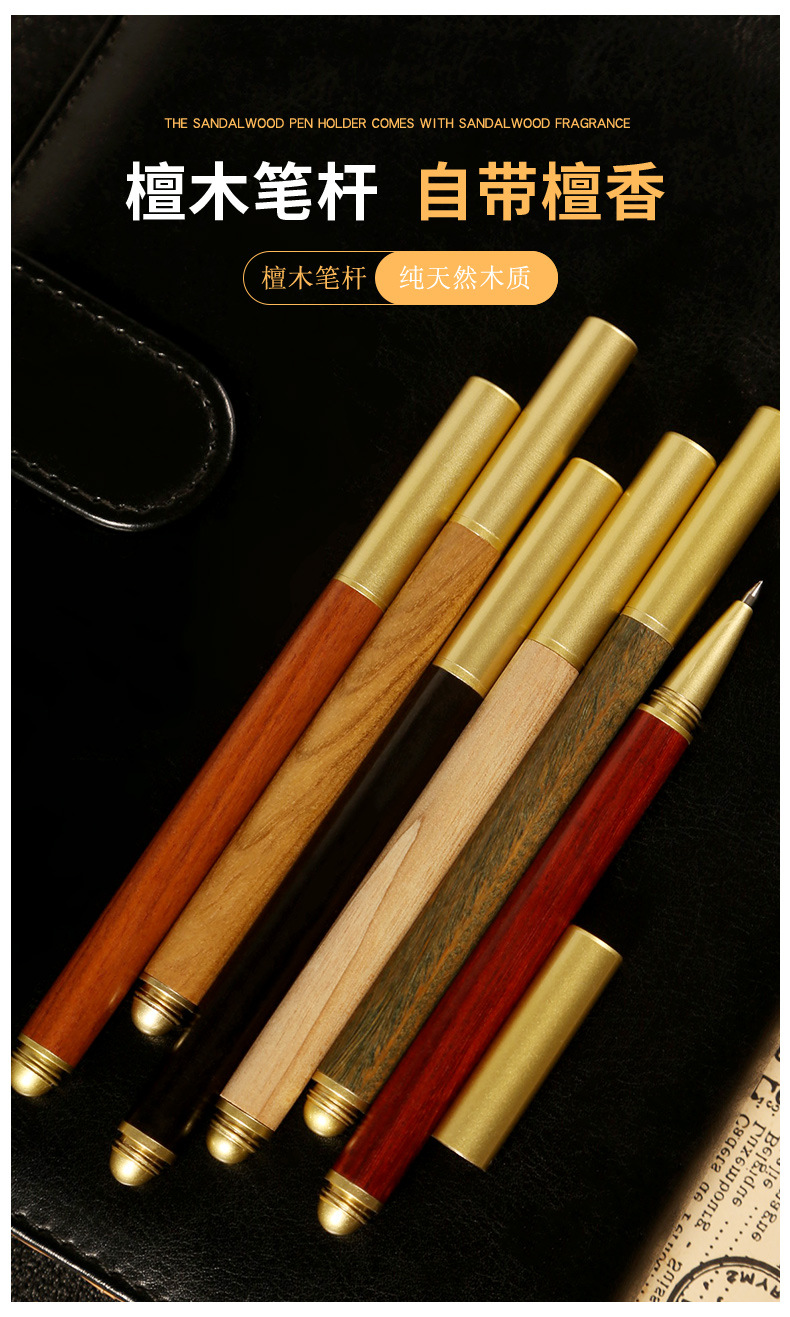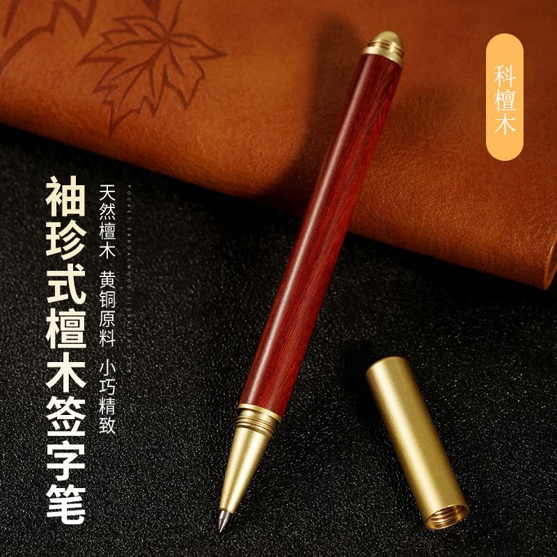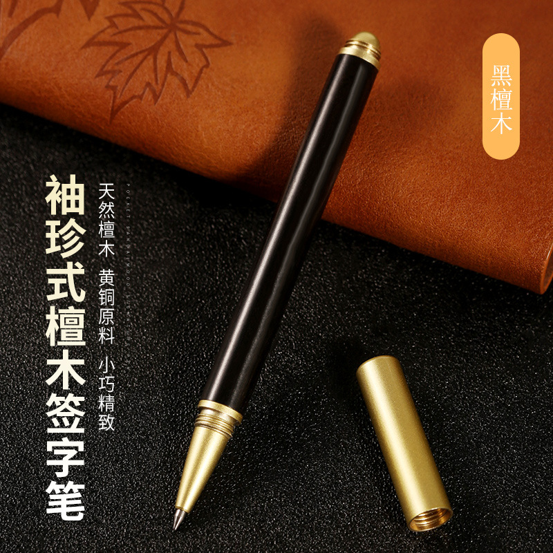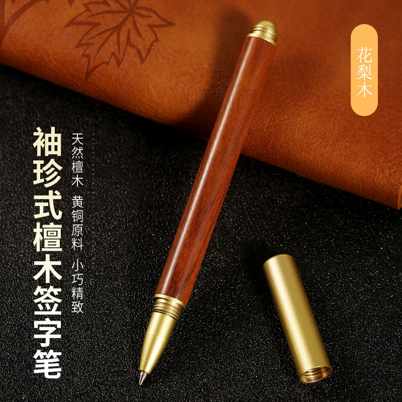 黄铜檀木签字笔金属签字宝珠笔花梨红木质中性笔礼品广告笔定logo