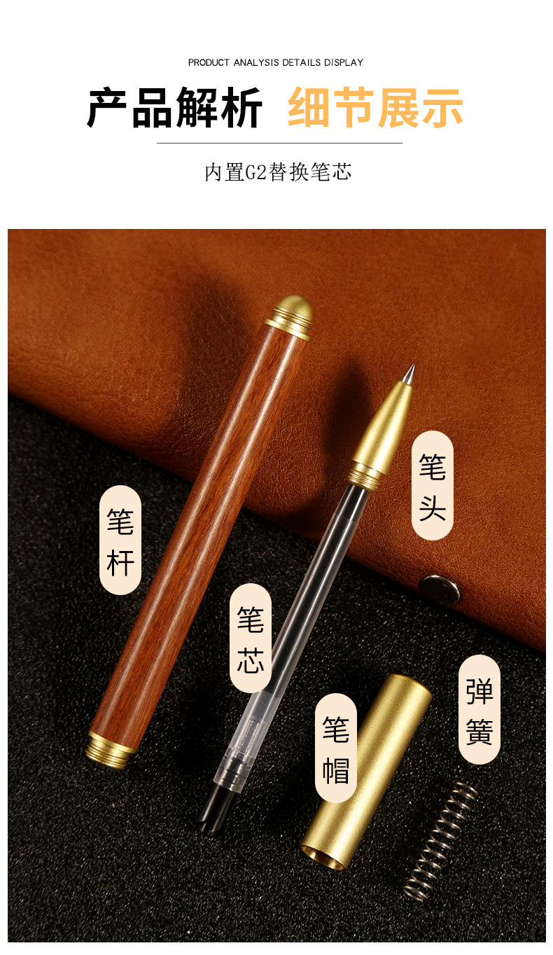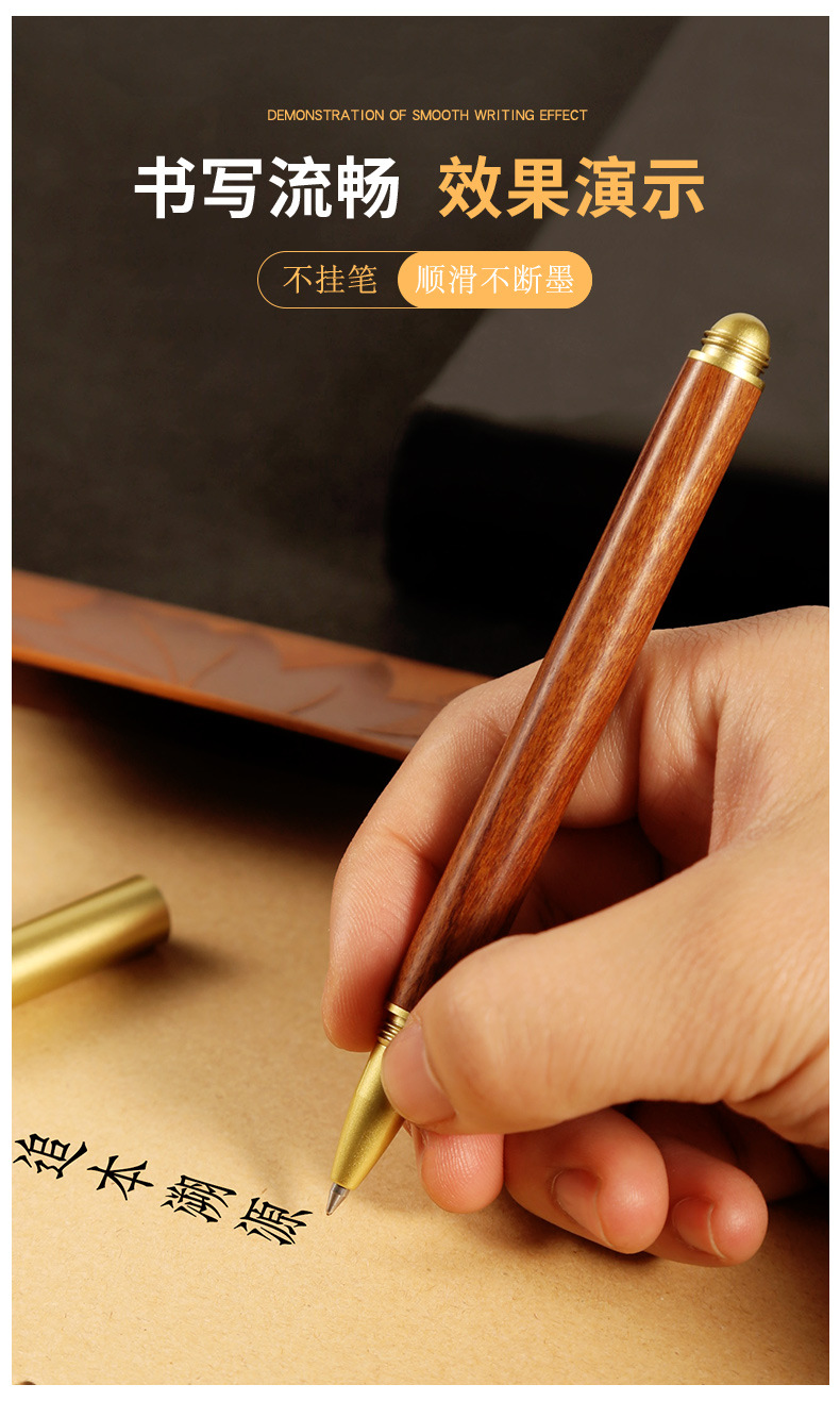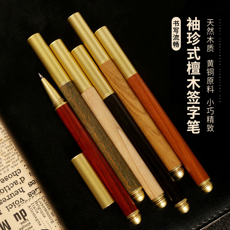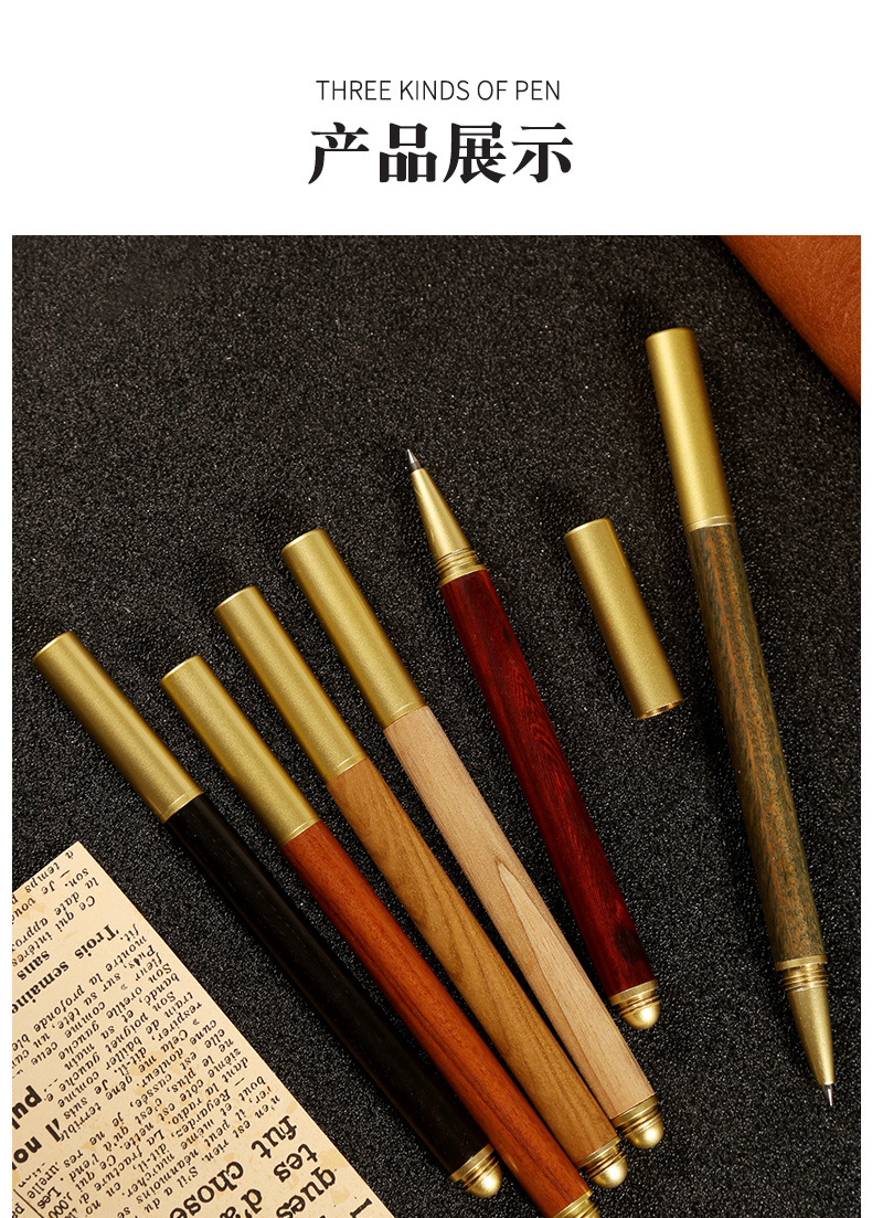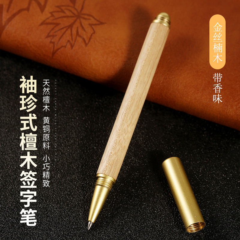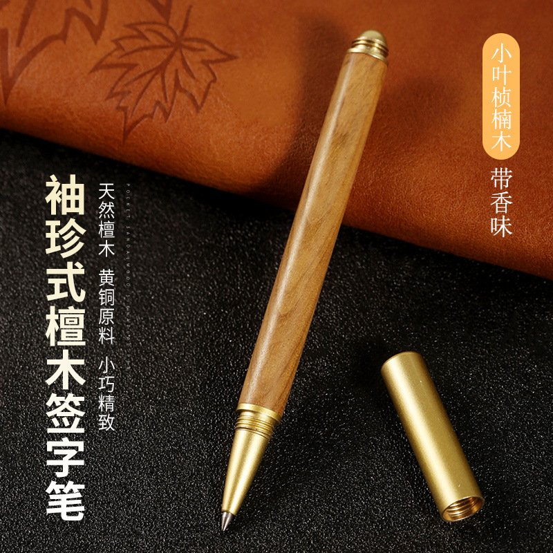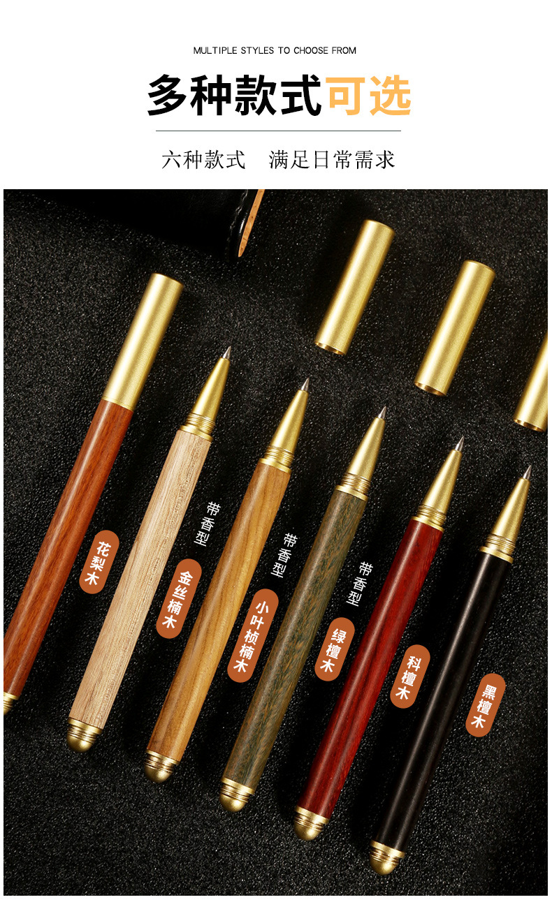 黄铜檀木签字笔金属签字宝珠笔花梨红木质中性笔礼品广告笔定logo