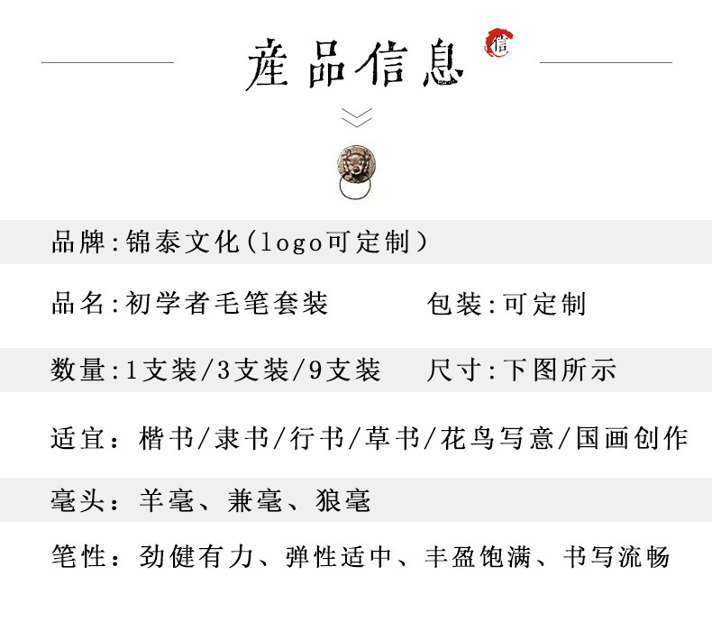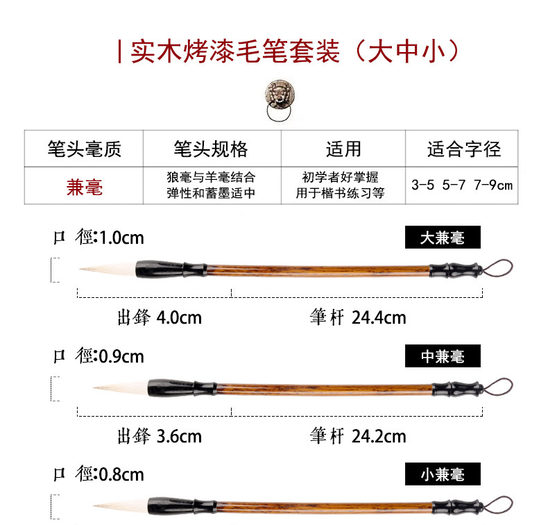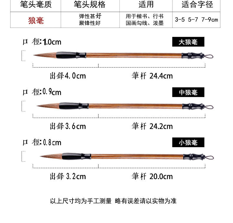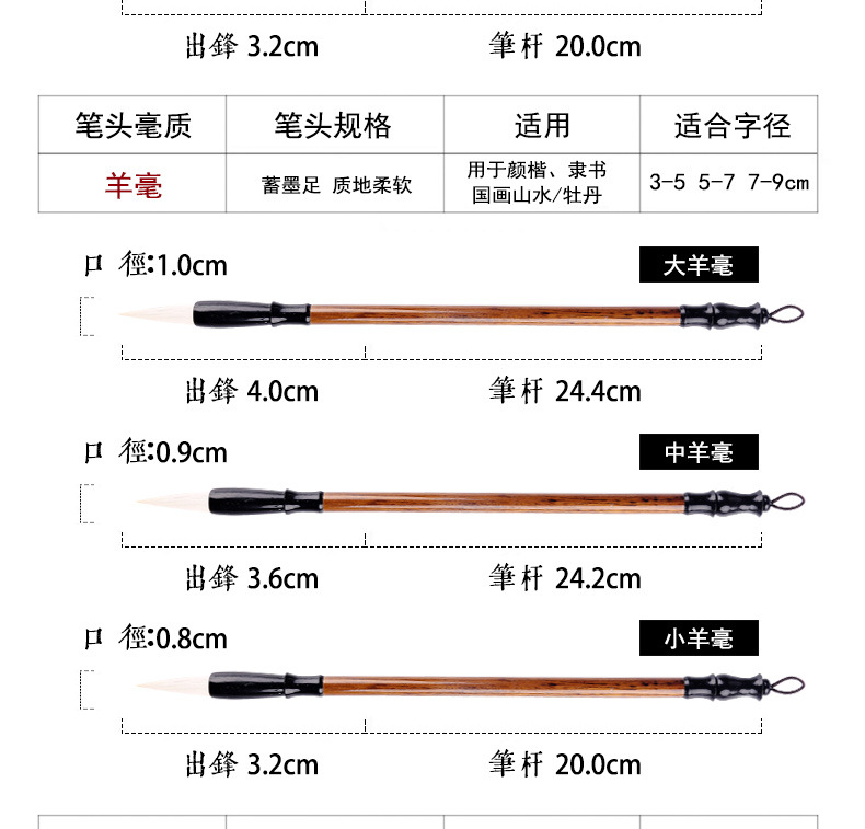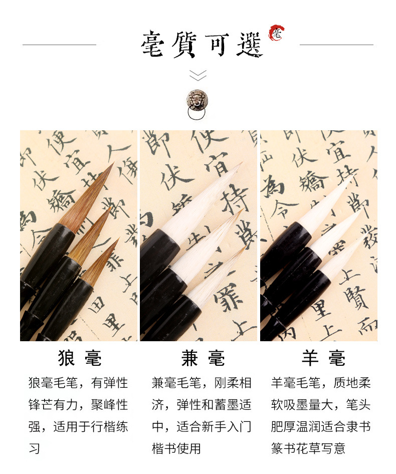 学生羊毫狼毫初学者白云兼毫毛笔大中小楷培训班书法国画练习字体