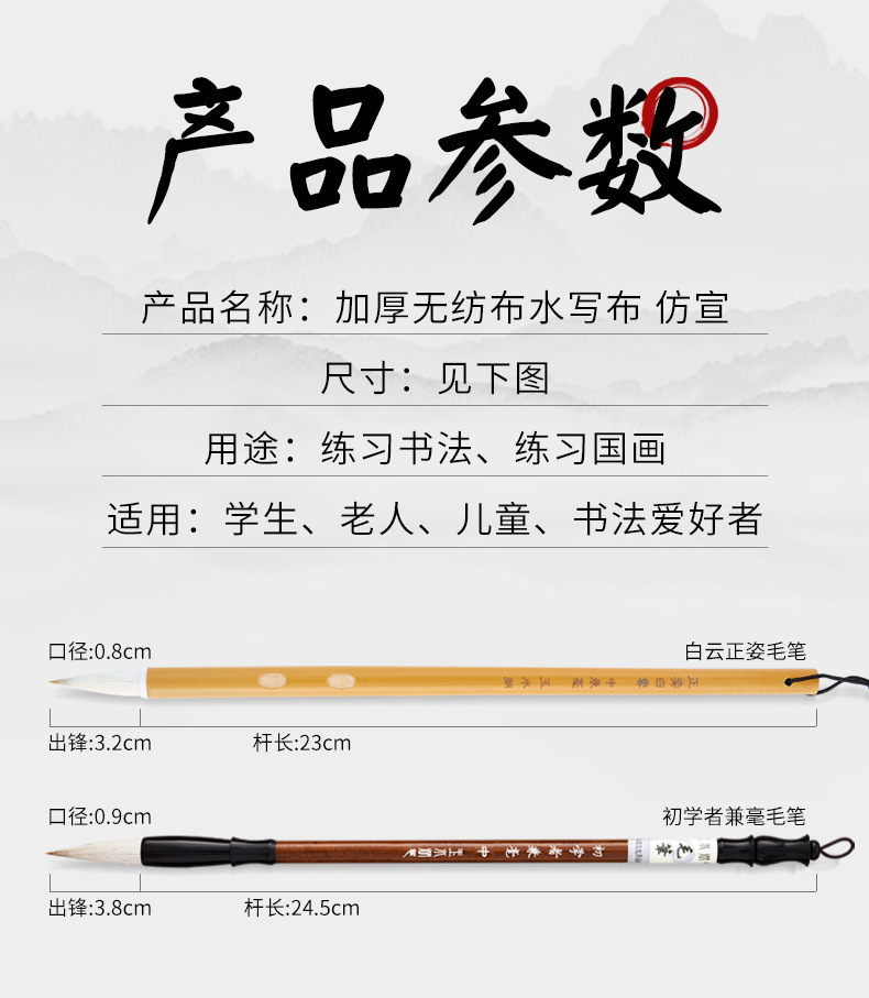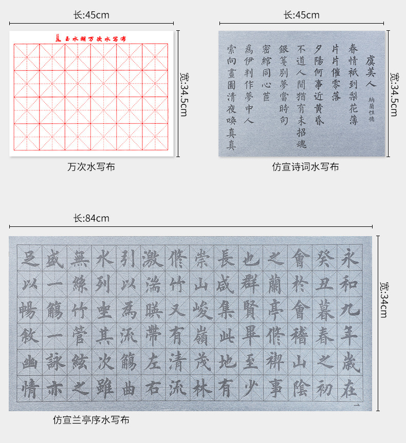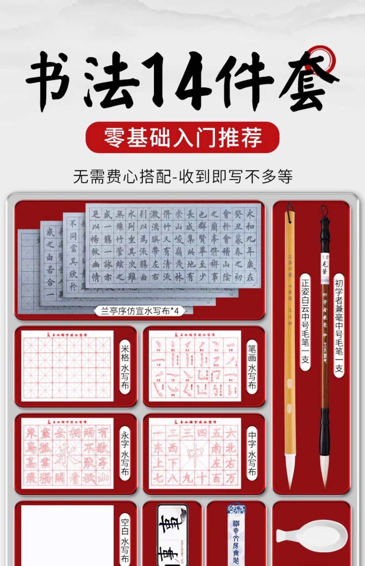 毛笔字水写布初学者入门套装水写书法布清水练书法练字专用练习布